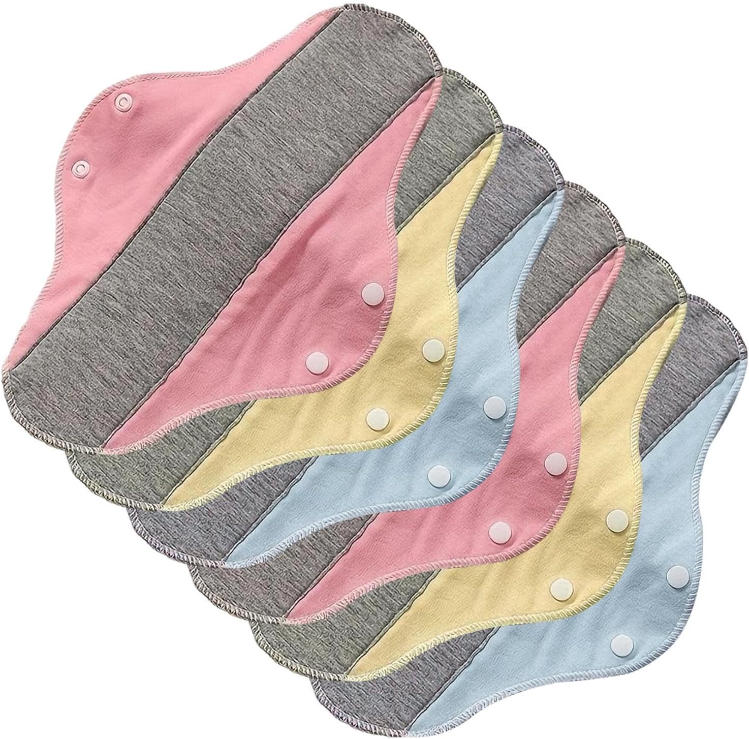 Organic Cotton Reusable Sanitary Pads, 6 Pack Eco-Friendly Washable Cloth Sanitary Pads for Menstruation and Urinary Incontinence, Leakproof Sanitary Pads for Women and