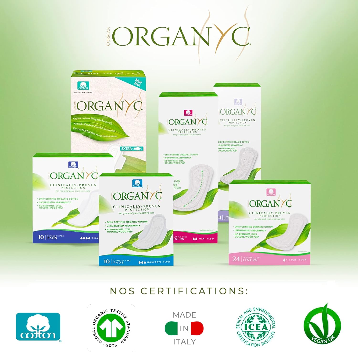 Los almohadillas Organyc, hechas de 100% algodón orgánico certificado, están diseñadas para brindar una protección cómoda y confiable durante los días de flujo moderado. Son especialmente adecuadas para pieles sensibles. Su superficie de algodón puro y núcleo absorbente ofrecen un contacto suave y transpirable con la piel, ayudando a reducir la irritación en comparación con las compresas convencionales. Estas almohadillas cuentan con protección clínicamente probada, formuladas para respetar la piel delicada durante su uso.