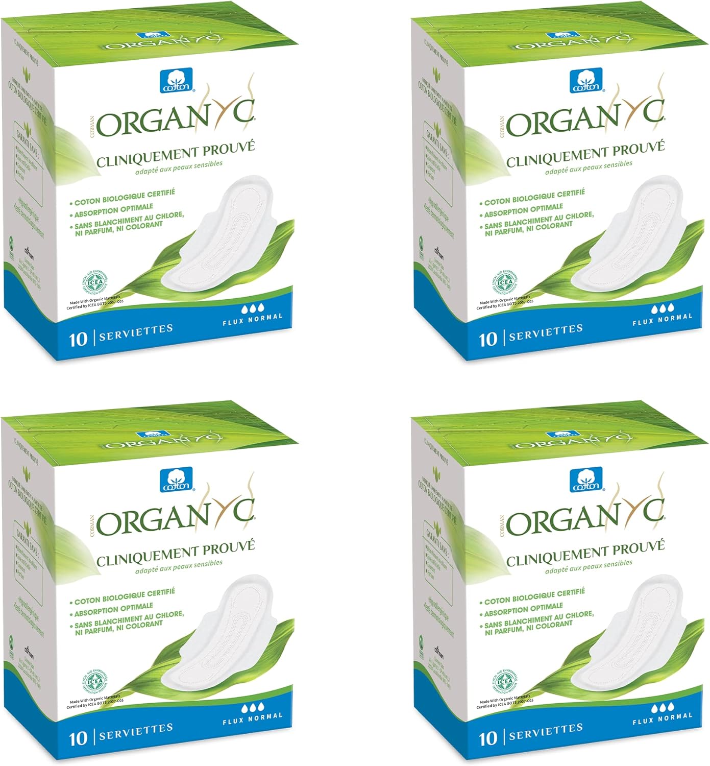 Organ(y)c, 100% Certified Organic Cotton Folded Wings Day Pads – 4 Packs x 10 Pads (Total 40 Units)