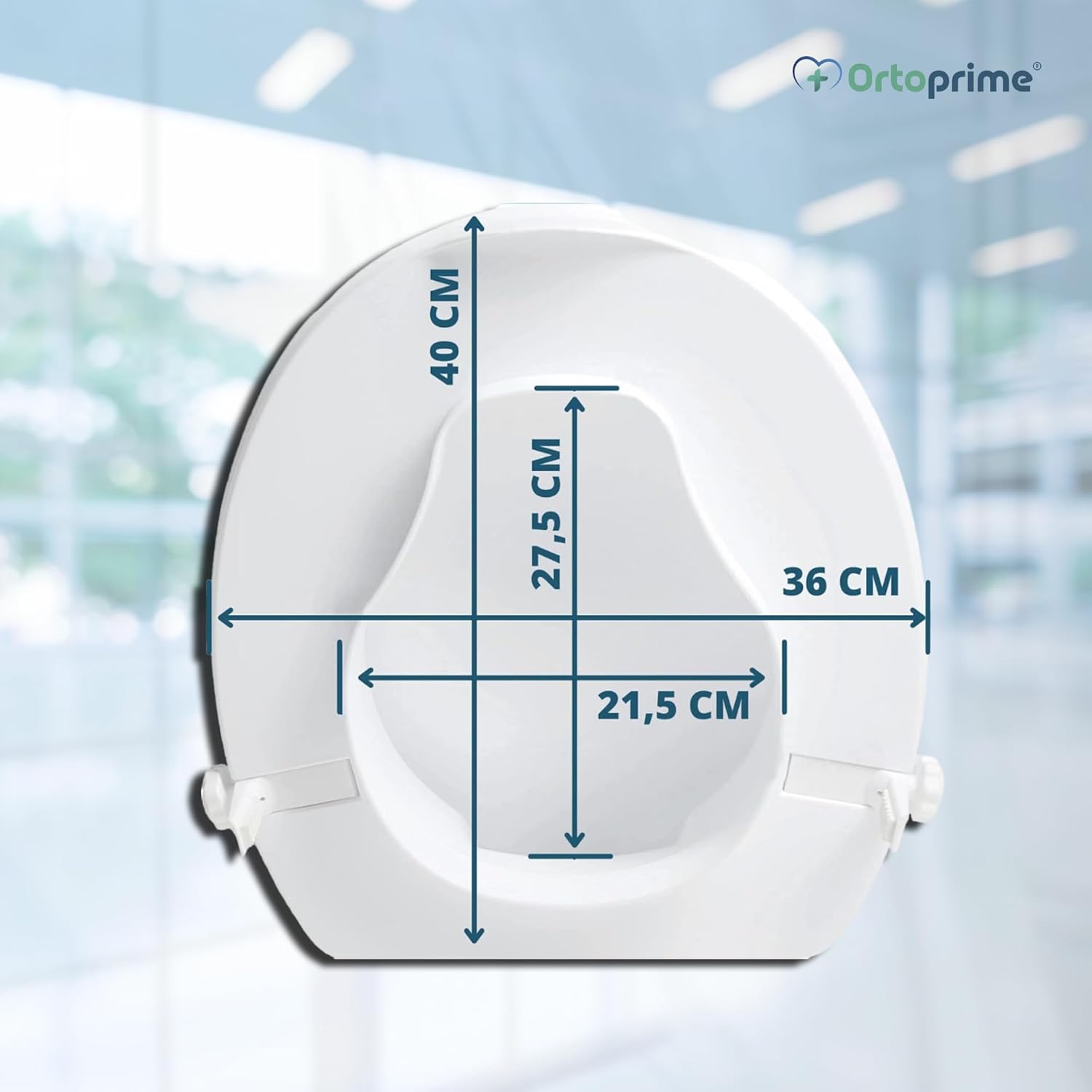 OrtoPrime Adult Toilet Riser with Lid – Height 10 cm – Orthopaedic Toilet Seat with Side Safety Closures – Universal Adaptable Toilet Riser – Toilet Riser