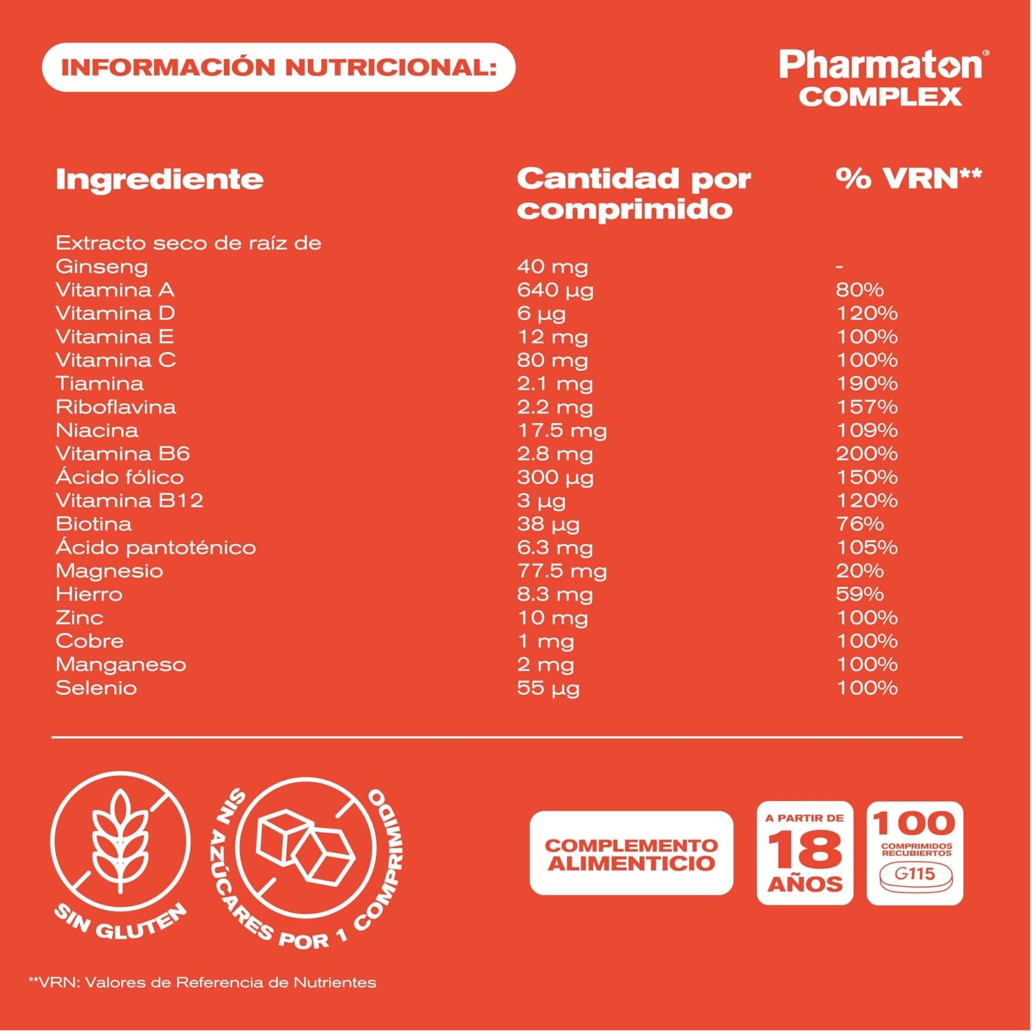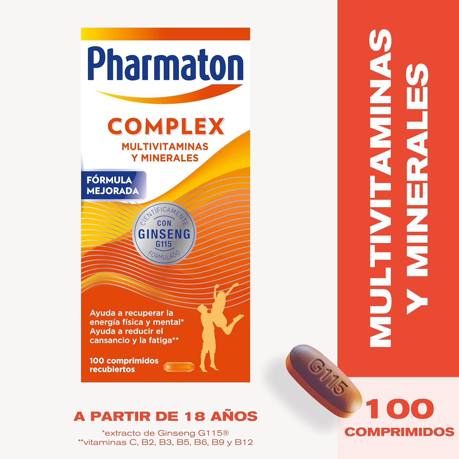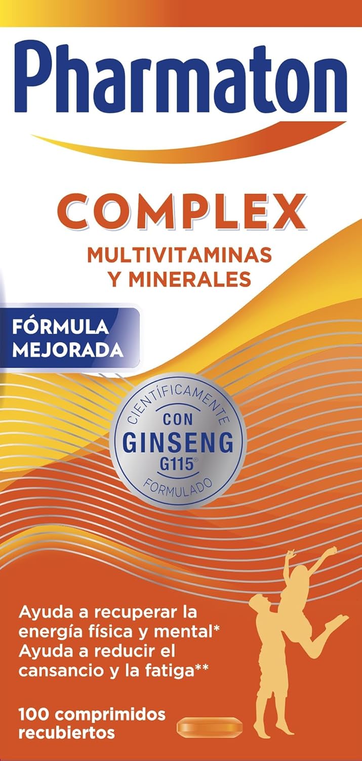 Pharmaton Complex es un complejo multivitamínico que contiene Ginseng G115®, un extracto estandarizado de origen 100% natural. Este producto está diseñado para proporcionar energía física y mental, ayudando a mantener un buen rendimiento cognitivo y reducir la fatiga. Su fórmula exclusiva combina Ginseng G115® con vitaminas del grupo B, lo que contribuye a un mayor bienestar general. Puedes disfrutar de los beneficios de este suplemento en tabletas recubiertas que son fáciles de tragar. Algunas características destacadas incluyen: