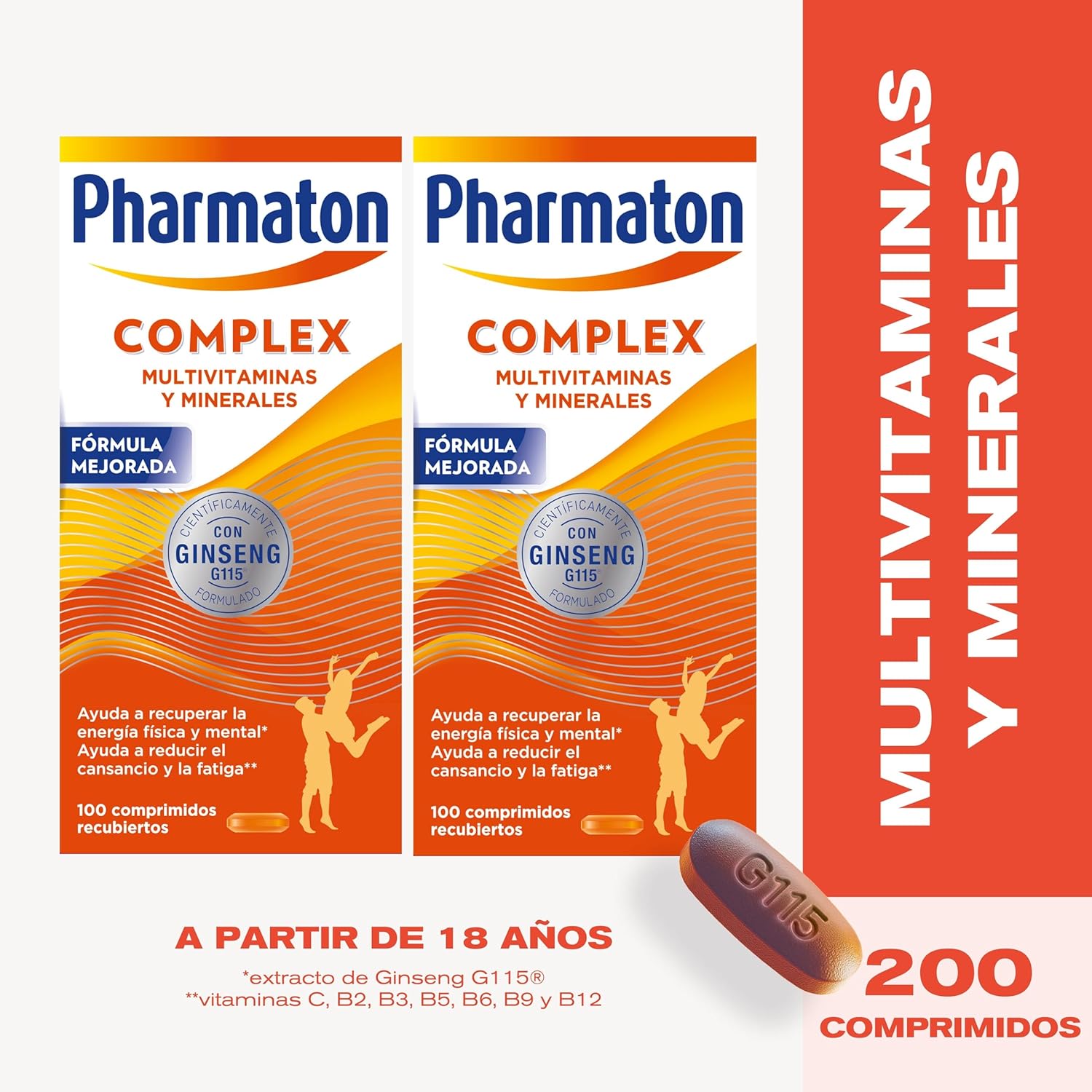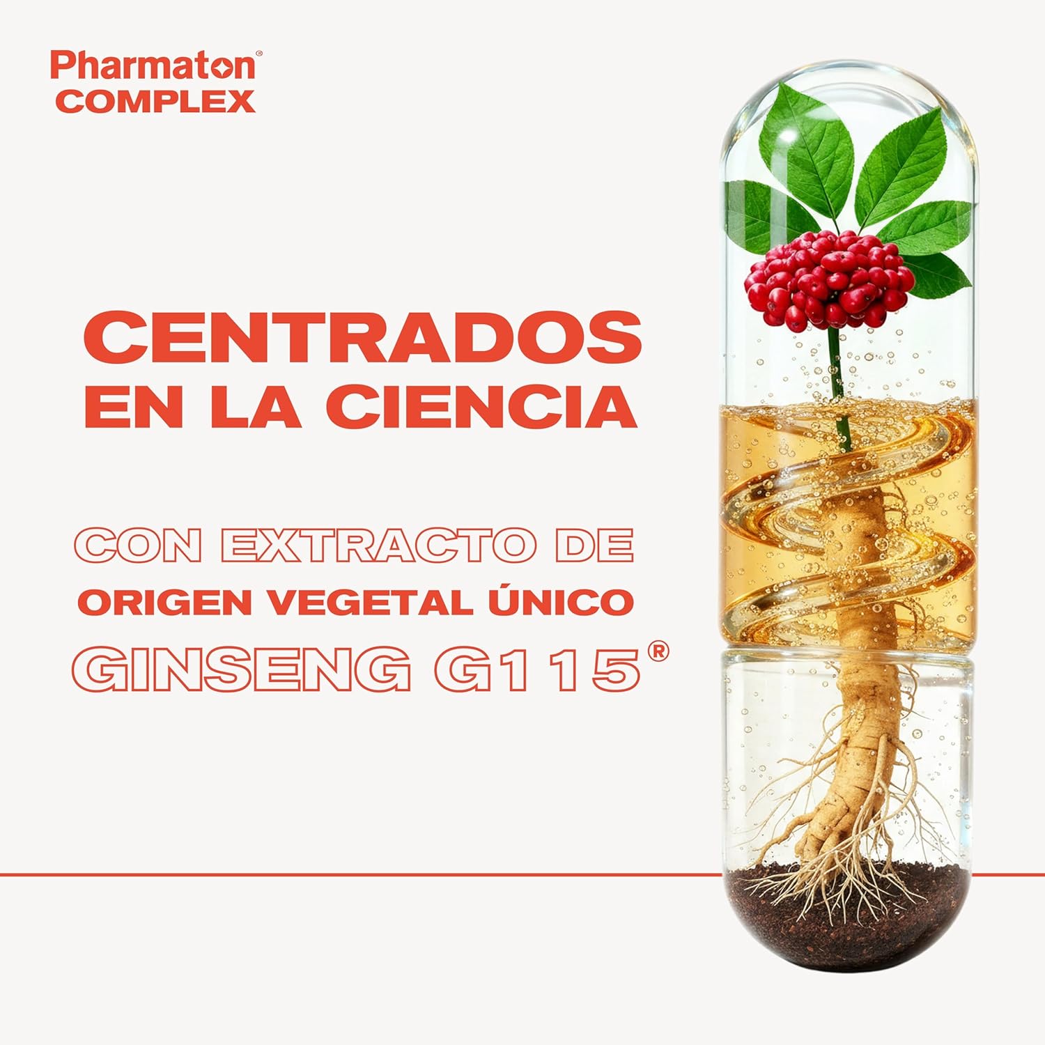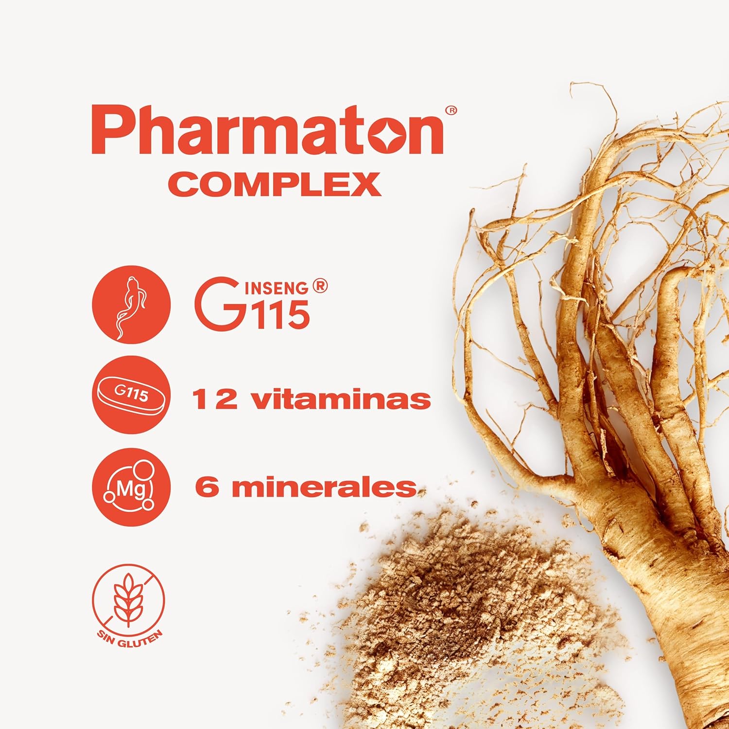 Pharmaton Complex es un multivitamínico único que contiene Ginseng G115, un extracto estandarizado de origen 100% natural. Este producto está diseñado para proporcionar la energía necesaria y mejorar el bienestar físico y mental. Su fórmula exclusiva, que incluye Ginseng G115 y vitaminas del grupo B, ayuda a mantener un buen rendimiento físico y mental, así como a reducir la fatiga.