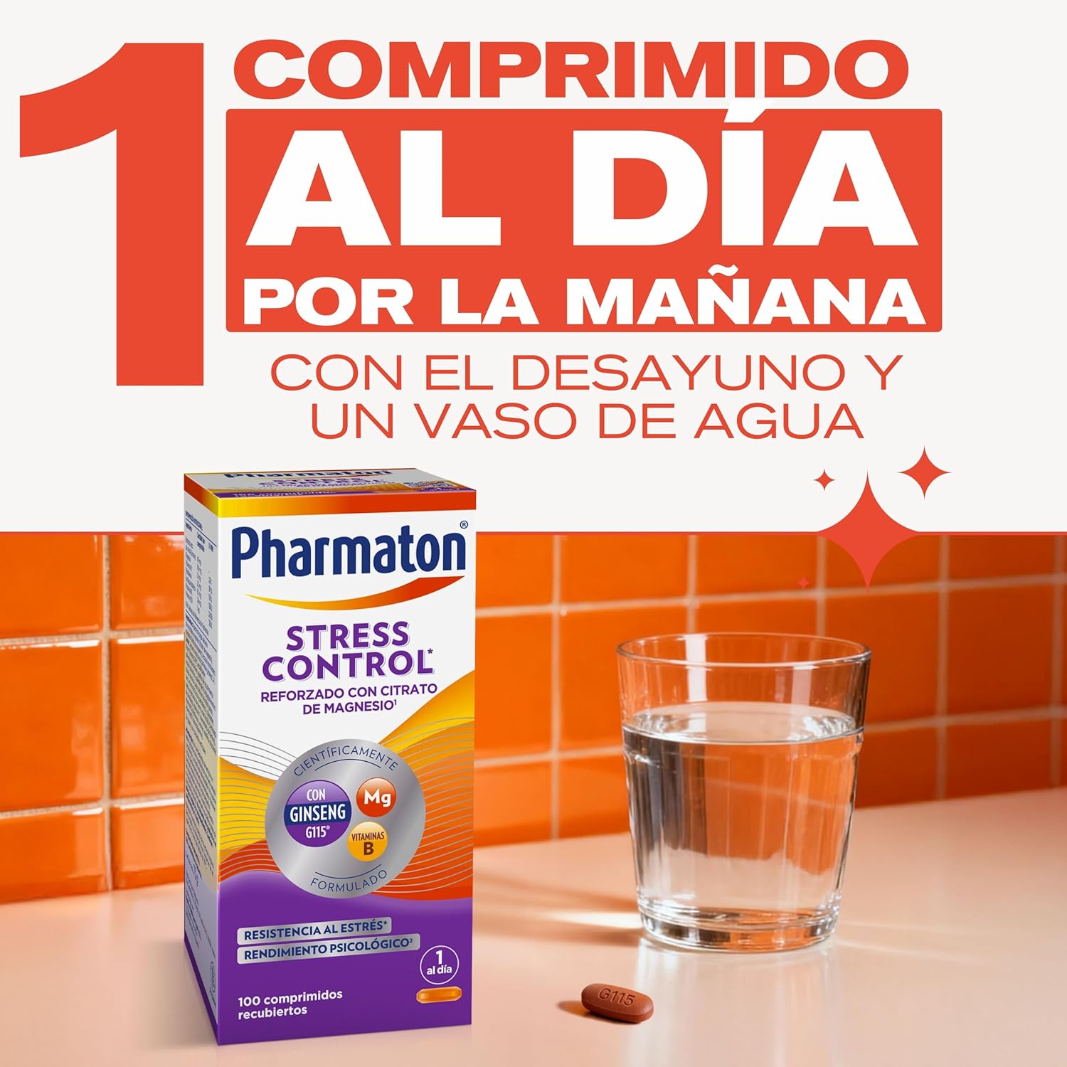 Pharmaton Stress Control Adult Food Supplement | 100 Tablets | Relief for Your Stress Throughout the Day | Added with Ginseng G115 | Reinforced with Magnesium Citrate and B Complex