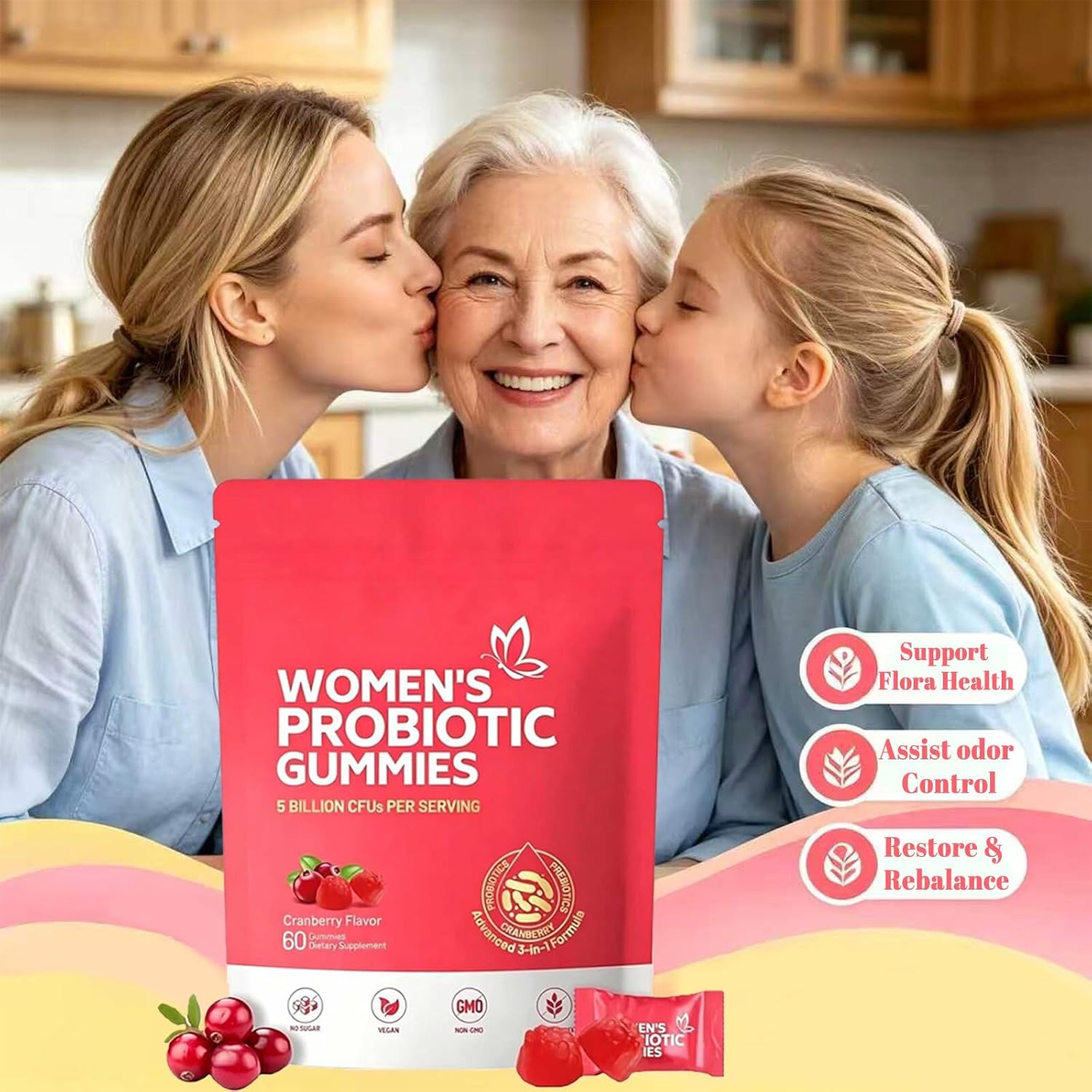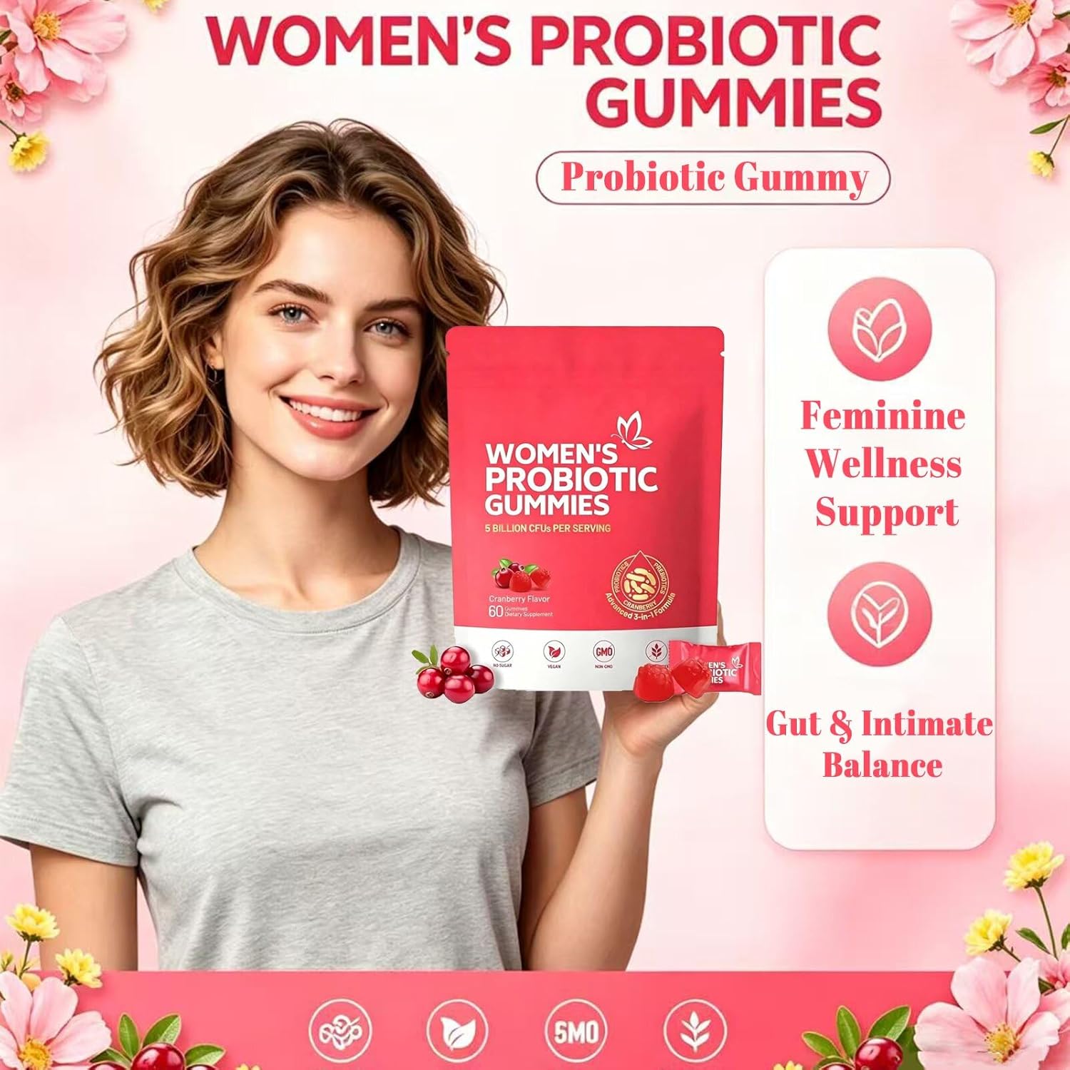 Probiotic Gummies for Women – 60 Count | Intimate Support with Prebiotics & Lingonberry | Promotes pH Balance, Yeast Balance & Immune Health | Freshens Intimate Odor
