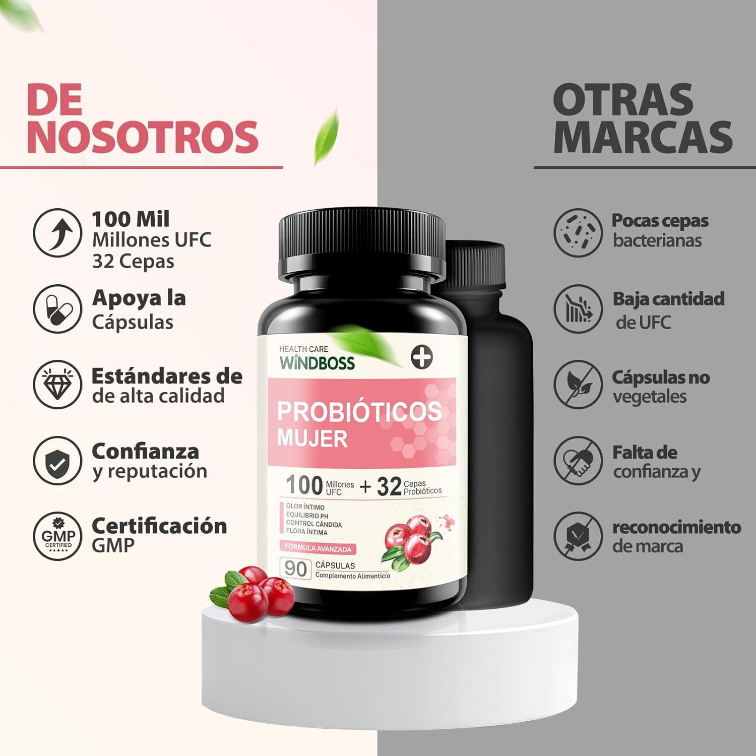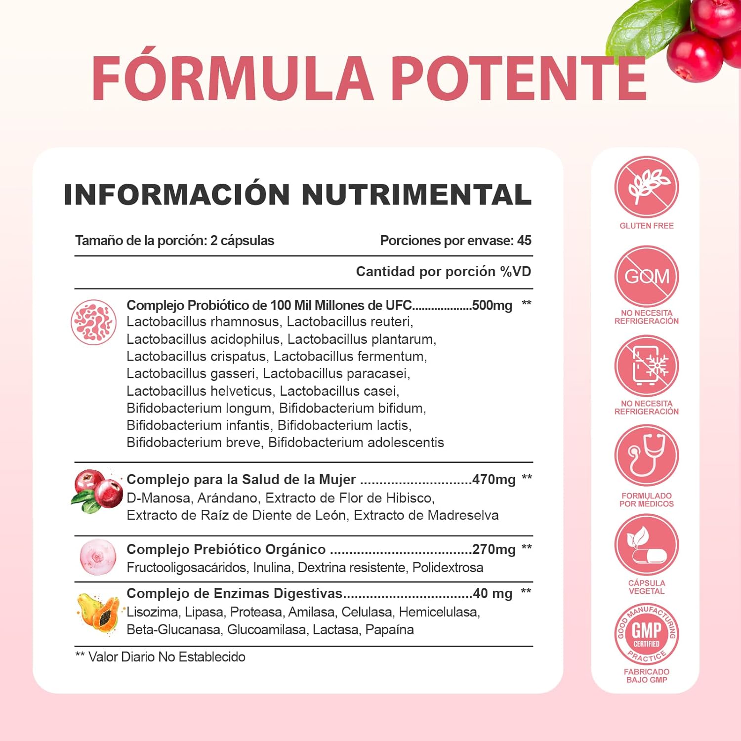 Los probióticos para mujeres con 32 cepas, junto con prebióticos y enzimas digestivas, están diseñados para apoyar el equilibrio del pH y la salud del tracto urinario y digestivo. Estos probióticos se presentan en cápsulas vegetales, lo que los hace aptos para vegetarianos. La combinación de ingredientes puede ayudar a mantener un entorno saludable en el cuerpo femenino.