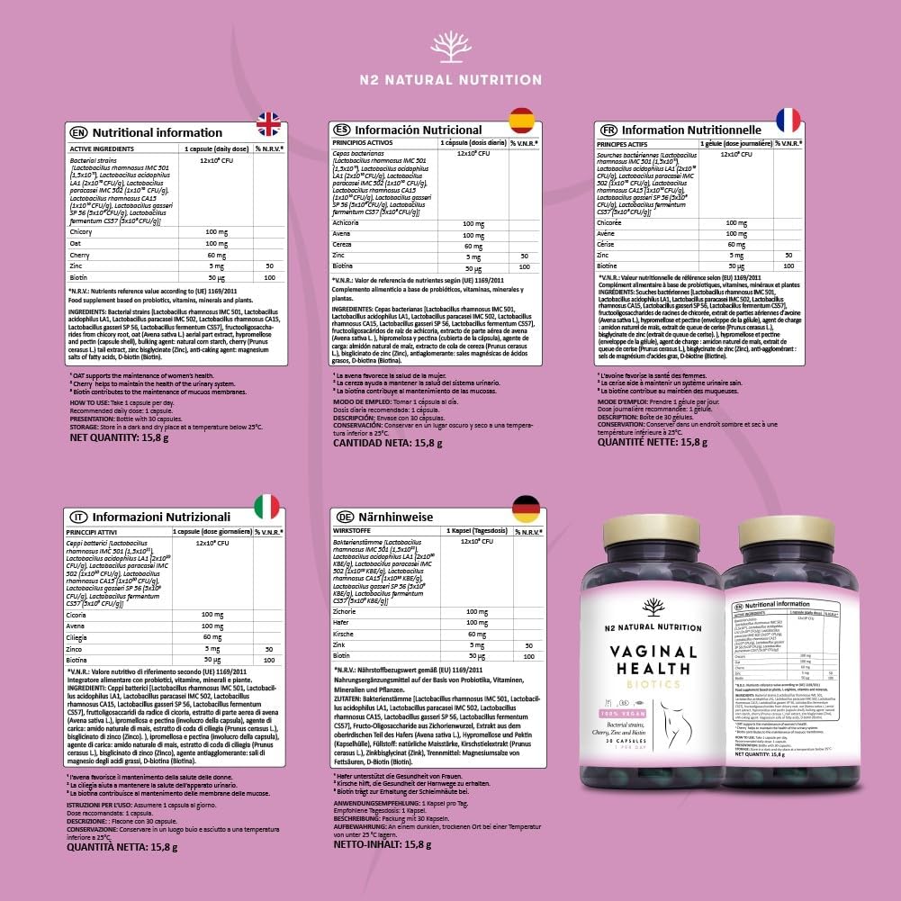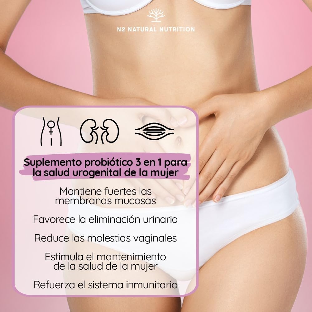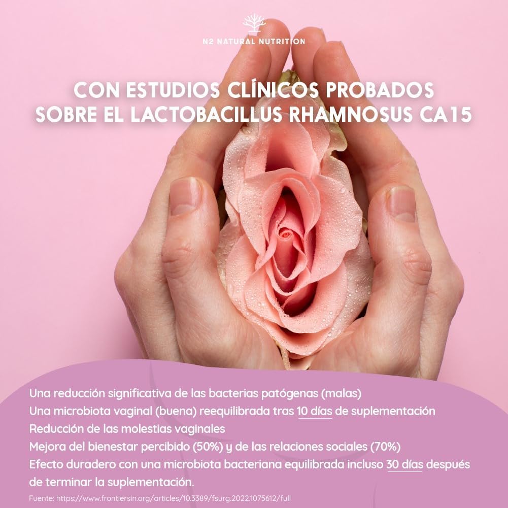 Probiotics Woman Flora Intima. 6 Different Strains. Fights and Prevents Vaginal and Urinary Infections. Improves the Mucosa and Strengthens the Vaginal Flora 30 Capsules. CE. N2 Natural Nutrition