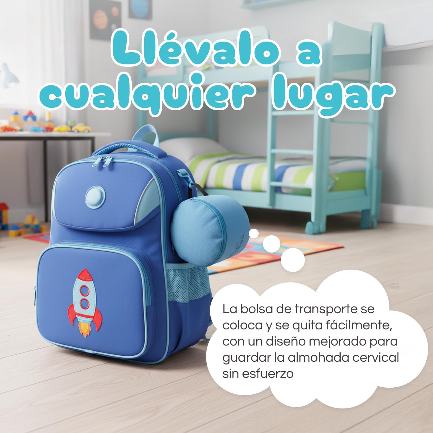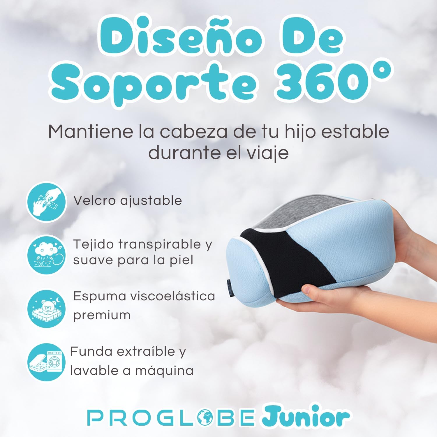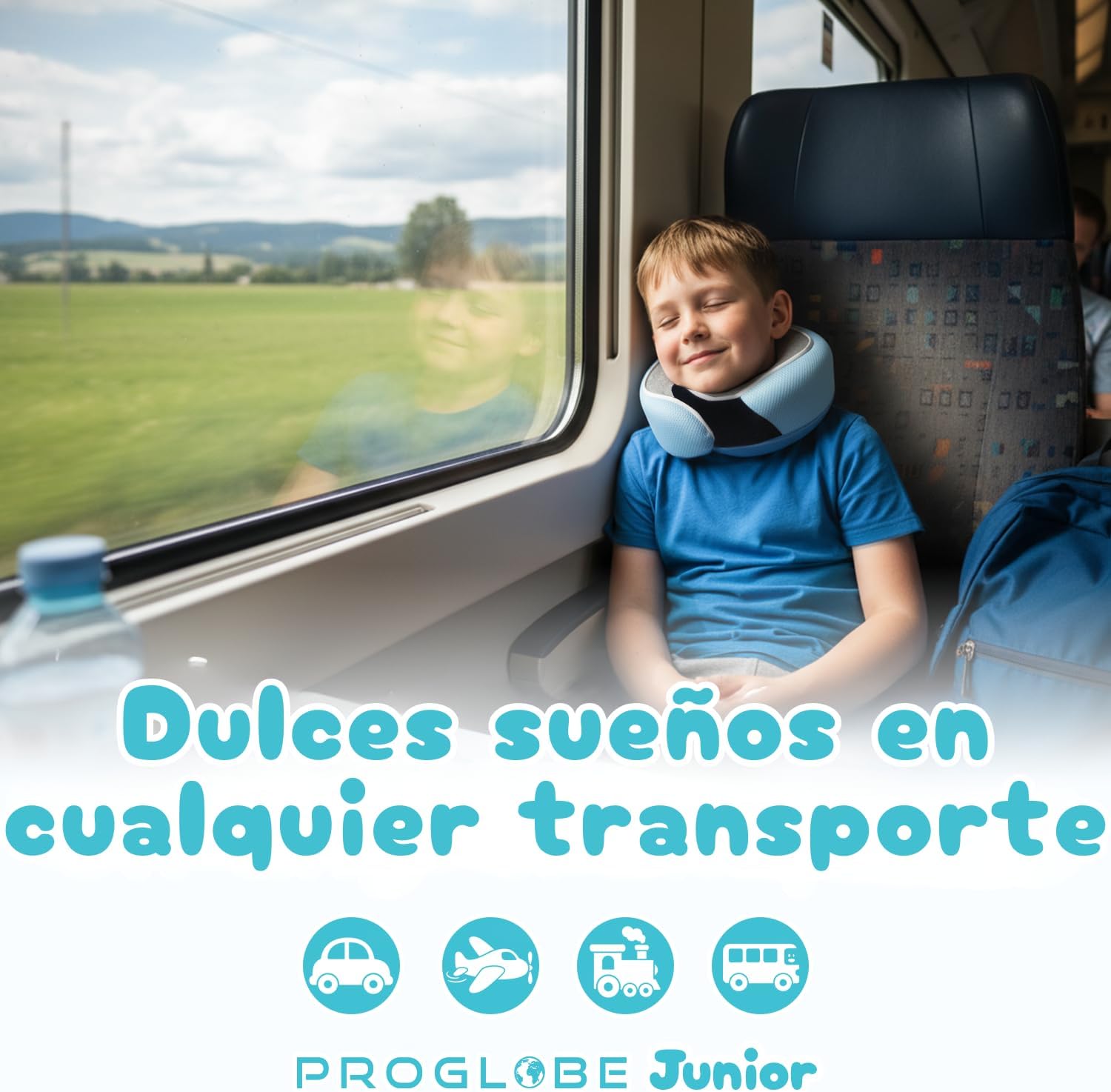 El cojín de viaje Proglobe está diseñado especialmente para niños de 4 a 13 años. Su forma ergonómica y material de espuma viscoelástica proporcionan un soporte adecuado para el cuello durante los viajes en avión o en coche. Este cojín es compacto y fácil de transportar, lo que lo convierte en un accesorio ideal para cualquier aventura. Además, es lavable, lo que facilita su mantenimiento y limpieza.