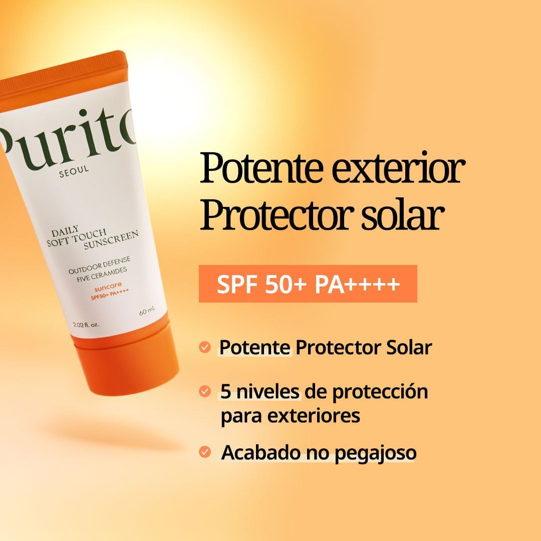 El PURITO SEOUL Daily Soft Touch Sunscreen es un protector solar de alta calidad diseñado para ofrecer una protección eficaz contra los dañinos rayos UVA y UVB. Con un SPF de 50+ y PA++++, este producto es ideal para el uso diario. Su fórmula ligera no blanquea la piel y es resistente al agua, lo que lo hace perfecto para actividades al aire libre.
