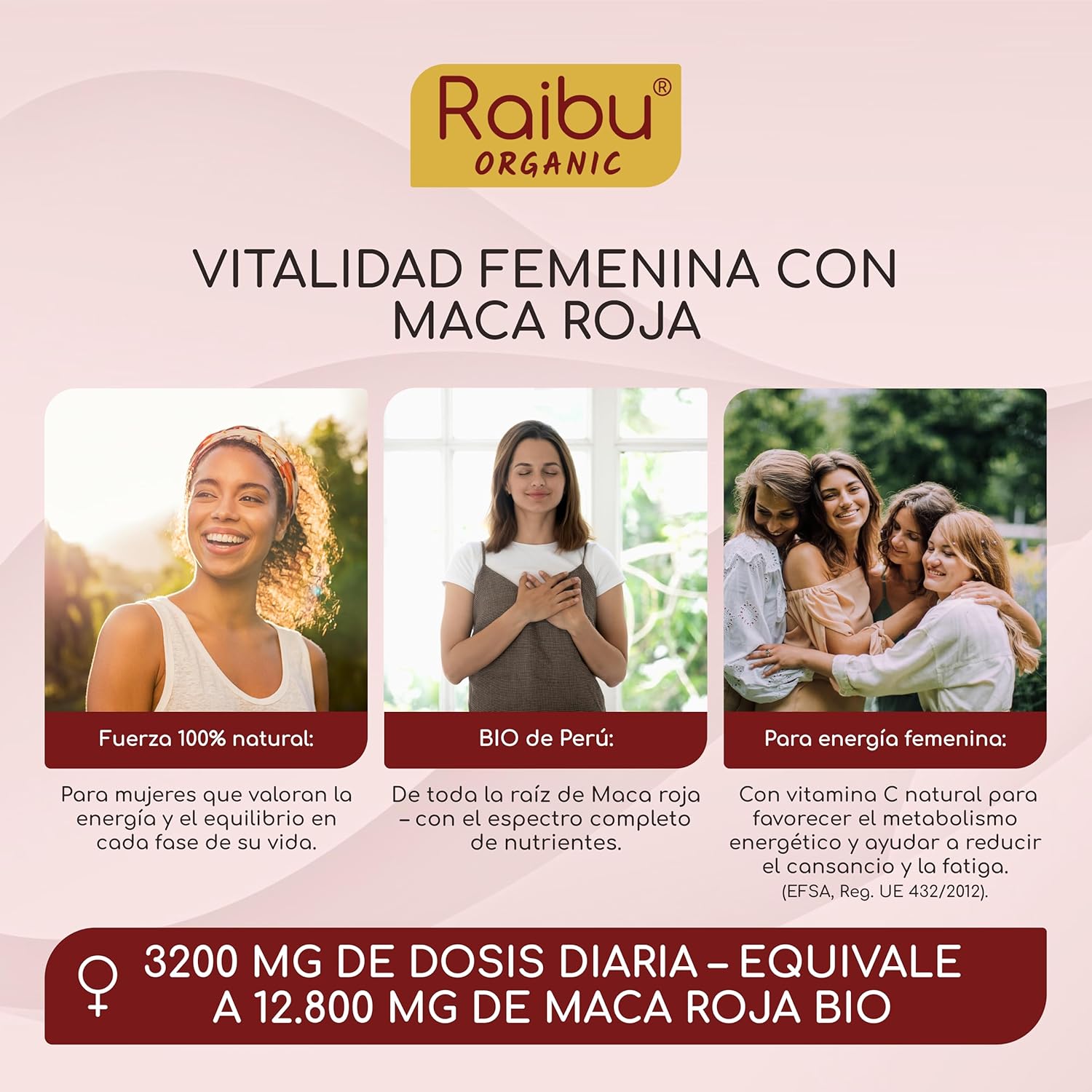 Es un suplemento natural en cápsulas que contiene extracto de maca roja, conocido por sus beneficios en la vitalidad y el equilibrio femenino.