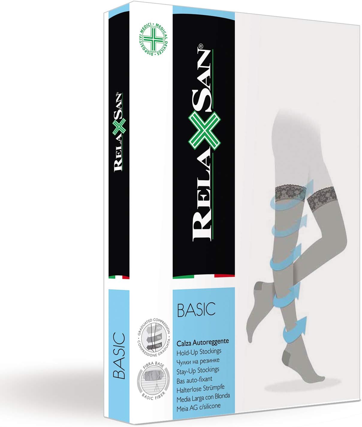 Las medias autoadhesivas Relaxsan Basic 870P ofrecen una compresión progresiva de 22-27 mmHg, ideal para mejorar la circulación en las piernas. Diseñadas con hilados elásticos de alta calidad, estas medias aseguran comodidad y resistencia durante su uso. La línea Relaxsan BASIC es reconocida por su durabilidad y diseño anatómico que se adapta perfectamente al pie. Además, cuentan con un talón reforzado, lo que las hace adecuadas para el uso diario.