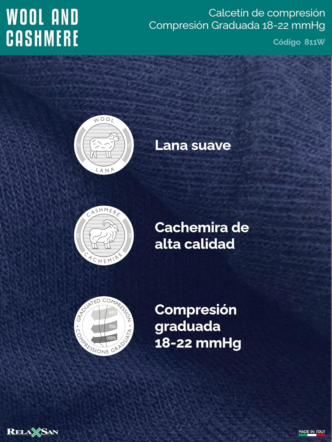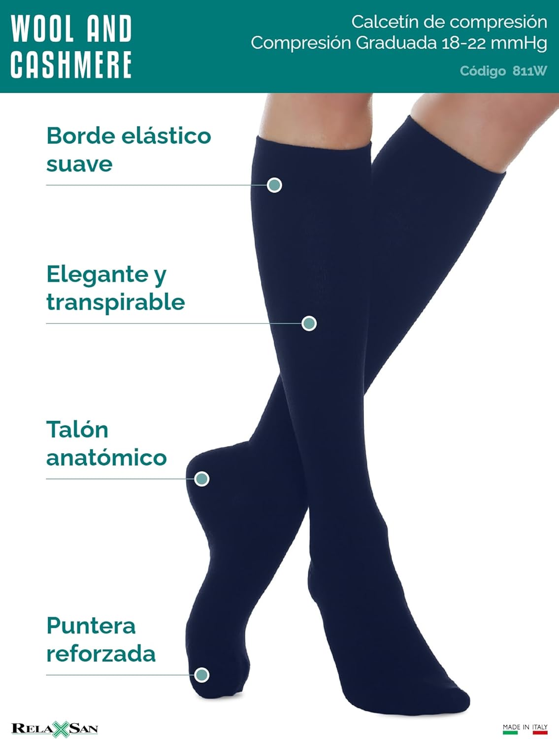 Relaxsan Compression Socks Women and Men with Wool and Cashmere, Thermal Socks, Made in Italy, 811W