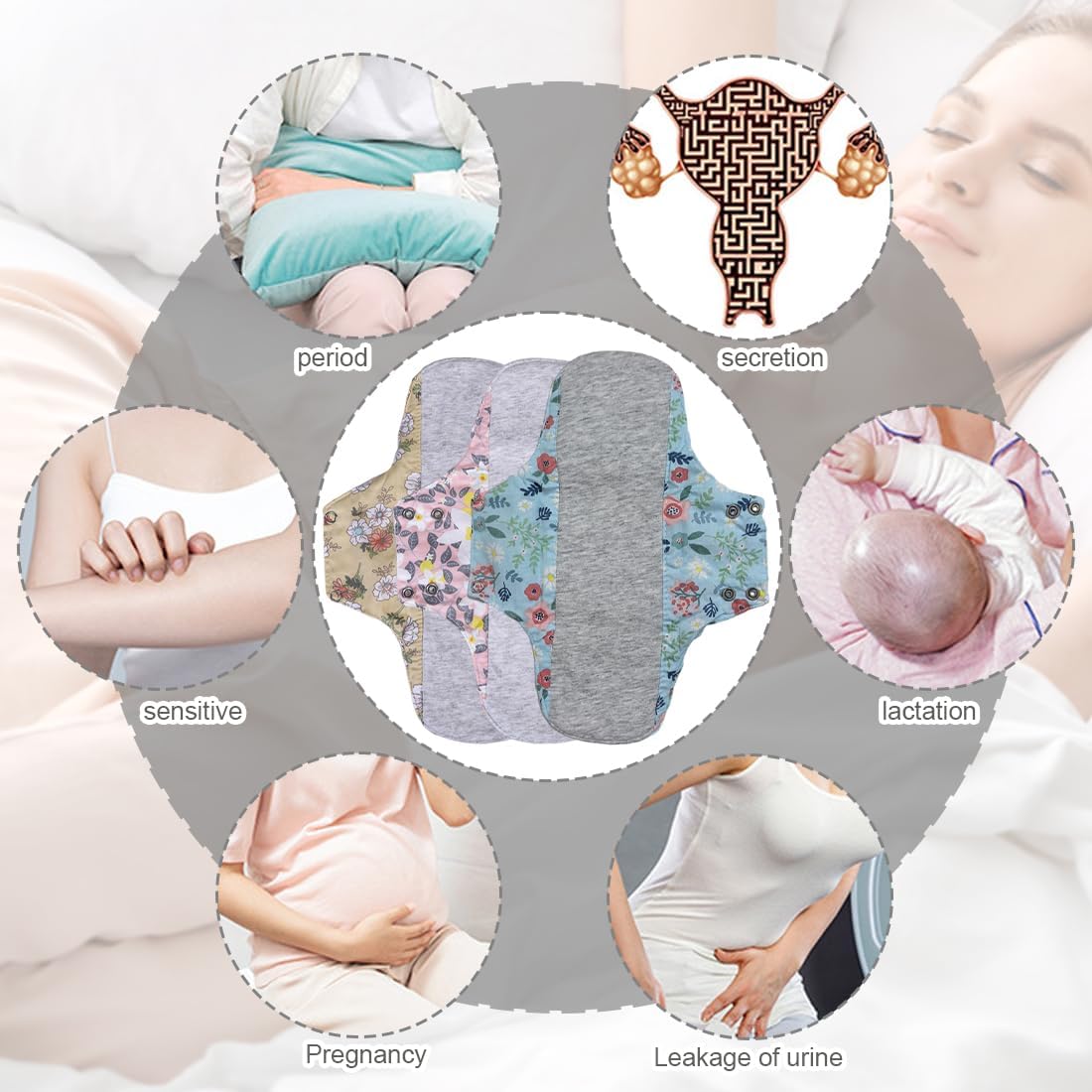 Las compresas menstruales reutilizables son una opción cómoda y ecológica para el flujo menstrual abundante. Están fabricadas con una capa de algodón ultra suave que se siente agradable al contacto con la piel. Su diseño resistente al envejecimiento permite que sean fáciles de transportar, ya que pueden enrollarse en un pequeño sobre. Además, son fáciles de lavar y secar, lo que las convierte en una opción práctica para el uso diario.