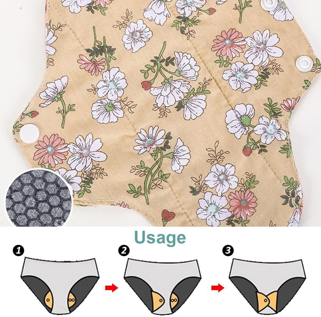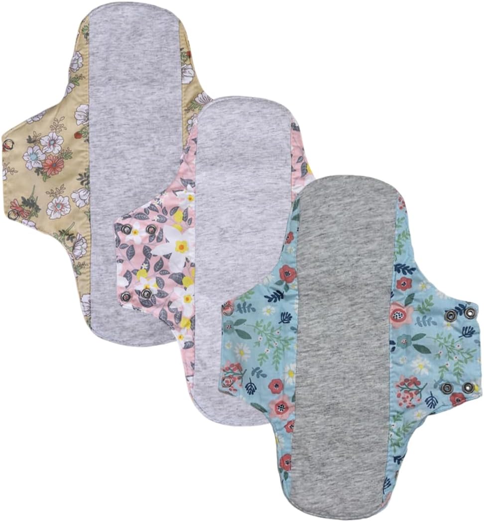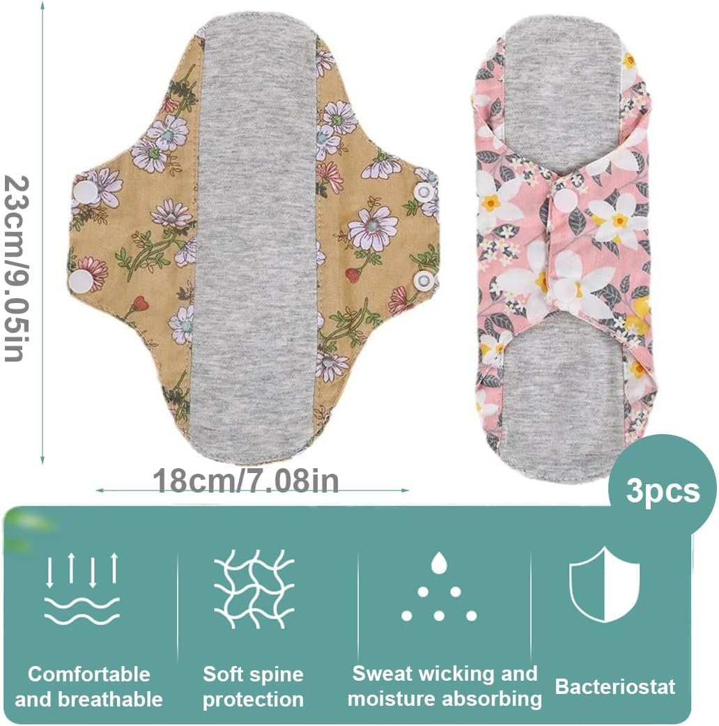 Reusable Menstrual Pads, 3 Pieces Reusable Cotton Pads, Washable Night Pads for Abundant Menstrual Flow, Large Sanitary Pads Set