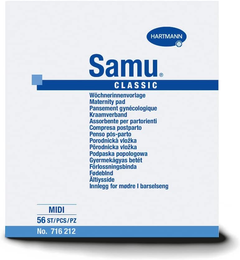 Samu Midi Classic Postpartum Compresses, Absorbs Moisture Quickly and Completely for Gynecological Surgical Interventions, 56 Count