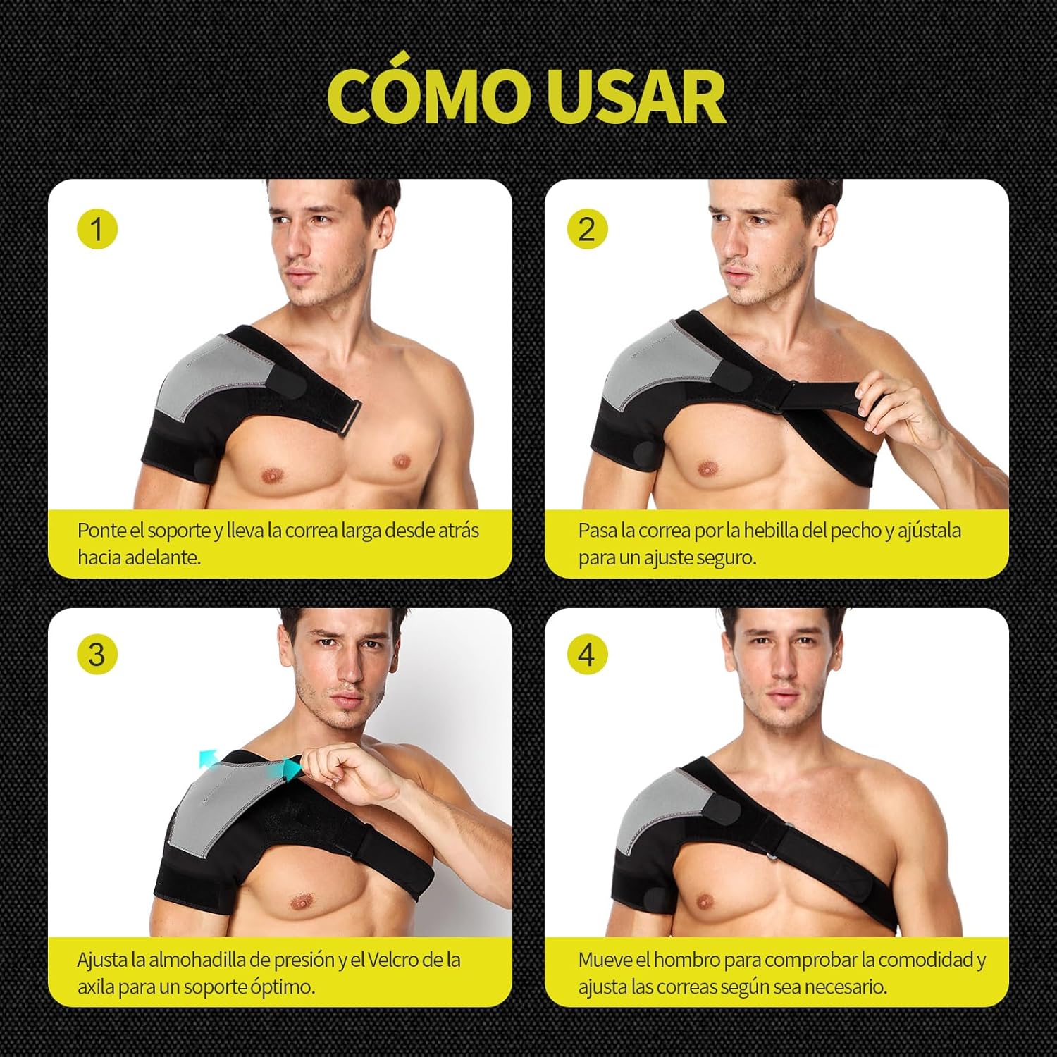 El soporte para hombro es una solución cómoda y ajustable, ideal para quienes buscan estabilidad y alivio del dolor. Este producto está diseñado para ser ligero y transpirable, permitiendo su uso durante todo el día. A continuación, algunas características clave: