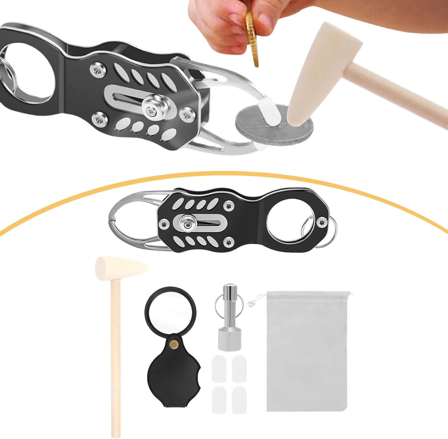 Este kit es compatible con una amplia variedad de monedas de metales preciosos, incluyendo plata, monedas conmemorativas y coleccionables. Fabricado con acero inoxidable y aleación de aluminio, garantiza durabilidad a largo plazo. Ideal para coleccionistas de monedas, inversores y entusiastas de metales preciosos.