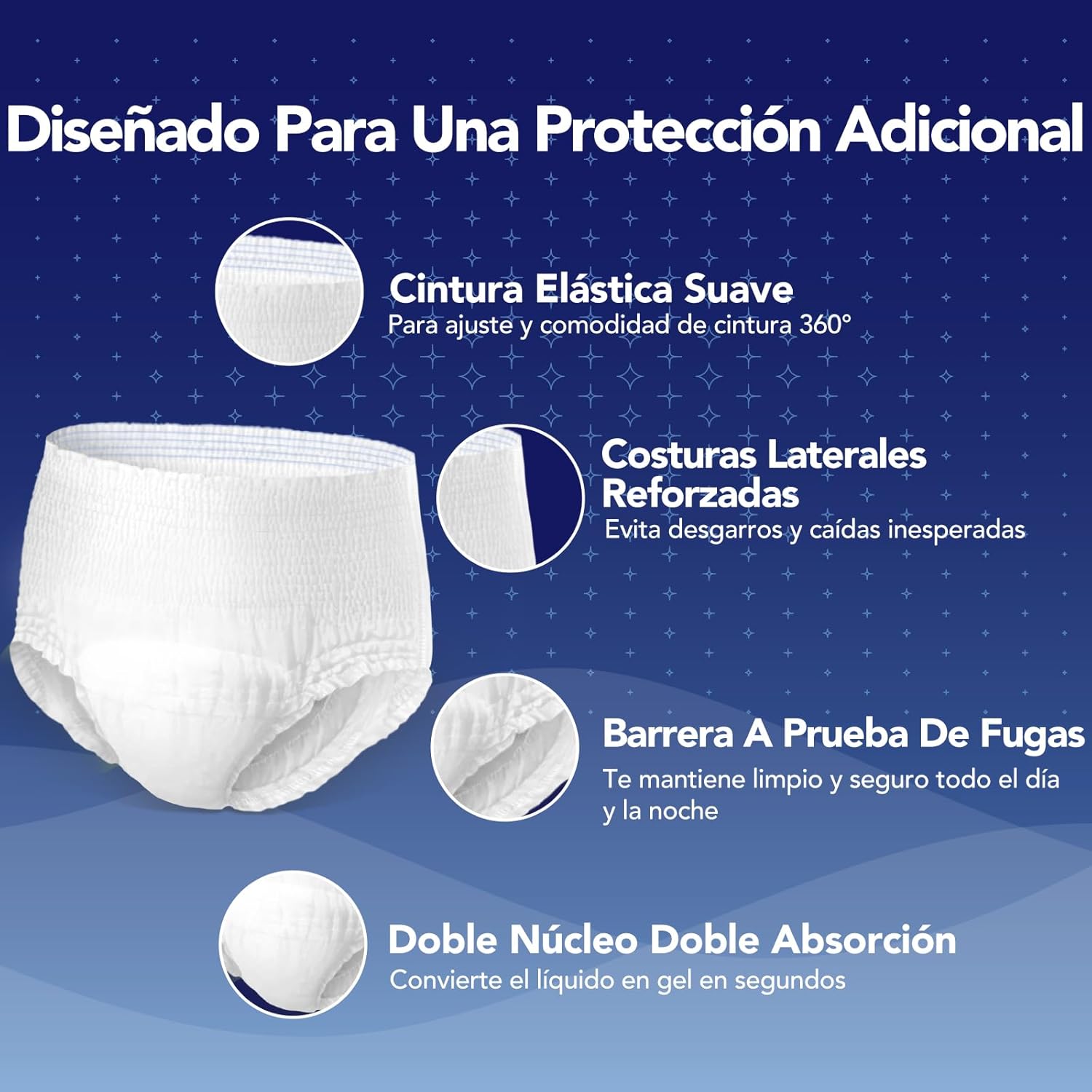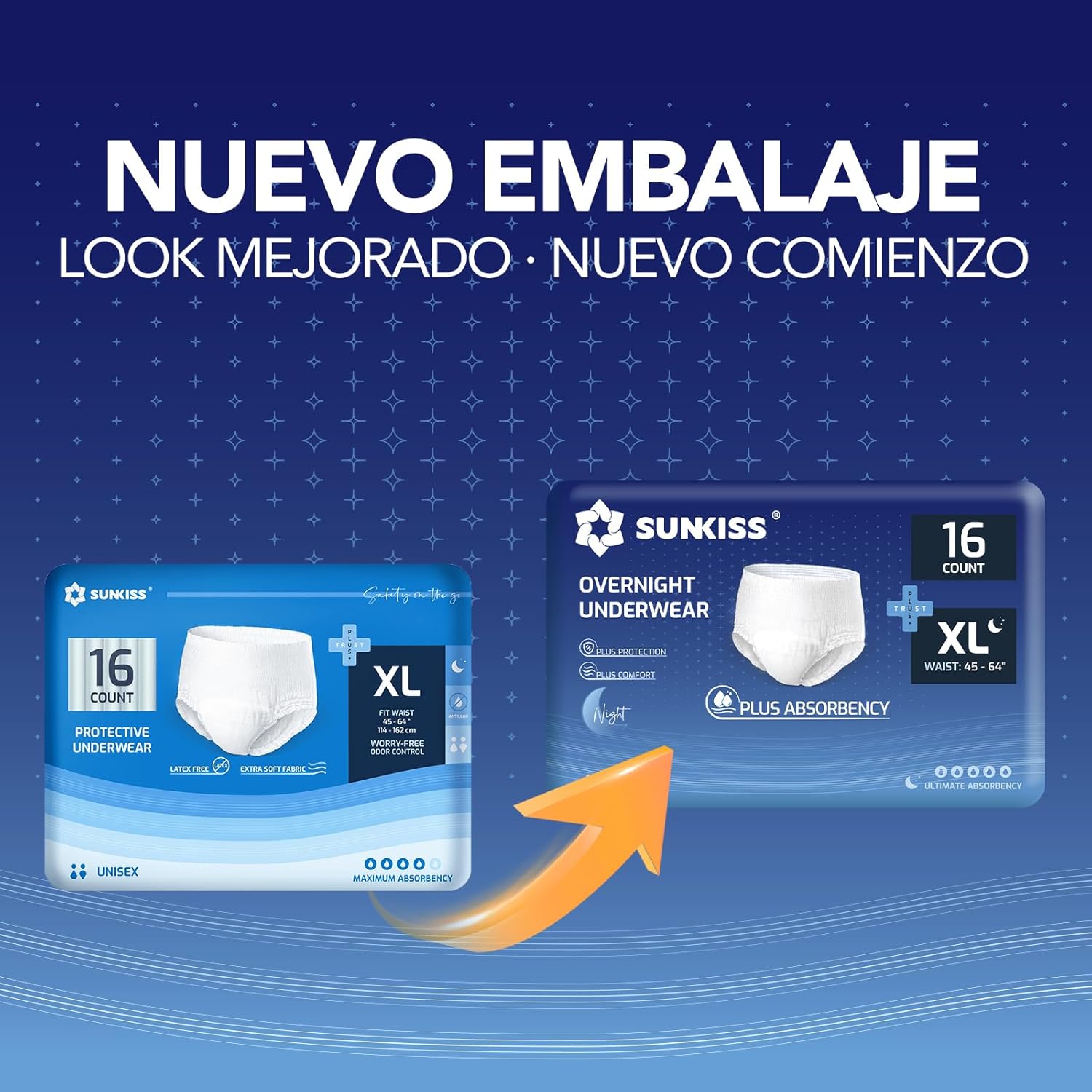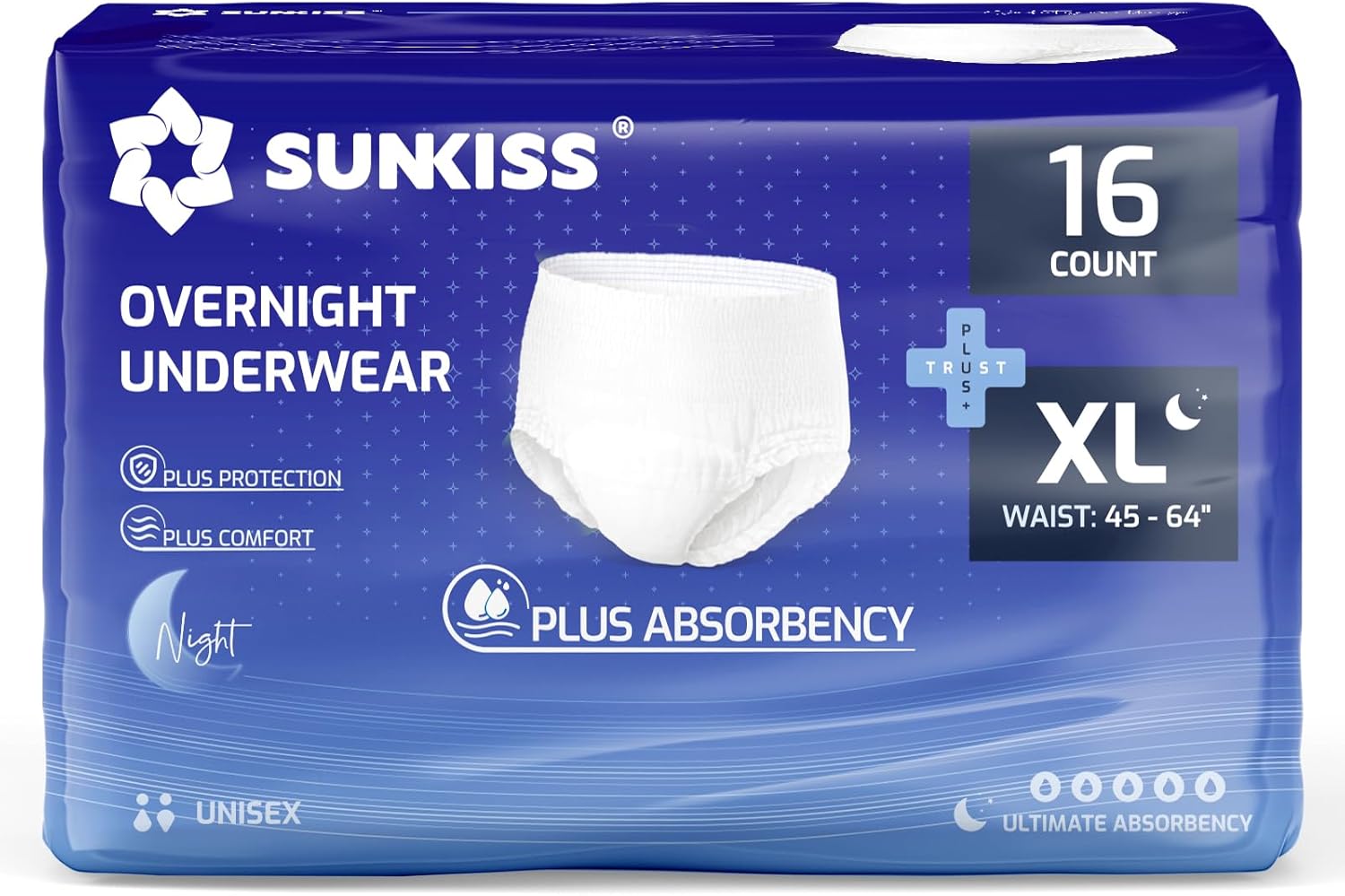 SUNKISS TrustPlus Adult Incontinence Pants, Absorbent Panties for Men and Women, Absorbent Underwear for the Elderly, Unisex, Odor Blocking, XL Night, 16 Count
