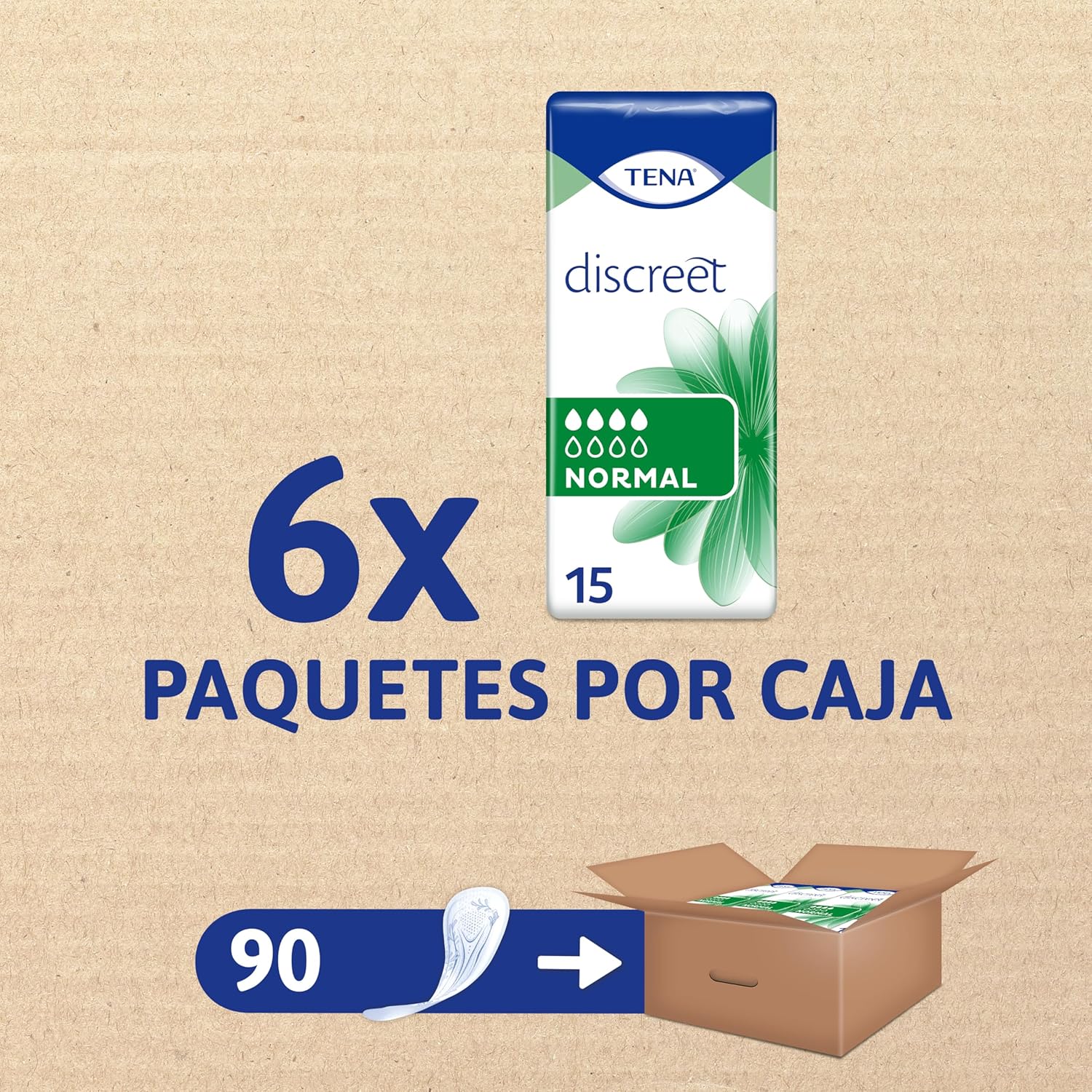 TENA Discreet Normal x90 – Daily Female Incontinence Protector – Normal Absorption for Medium Bladder Weakness and Urine Loss – Up to 12 Hours of Dryness – Monthly Pack (6×15)