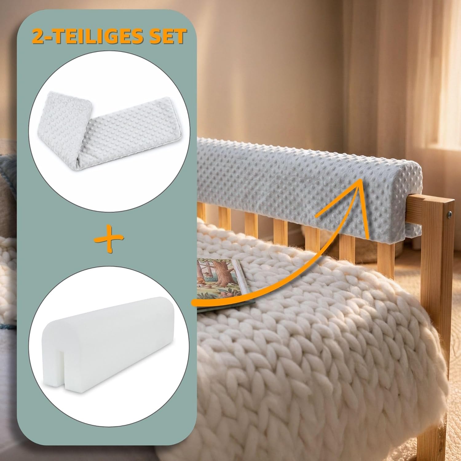 Totsy Baby Bumper Cot Bumper Baby Cots 50 cm – Anti-fall and Shock Protector Barrier Foam Safety Children and Girls for Bed Protection of Fence and Edge for Children Minky Grey