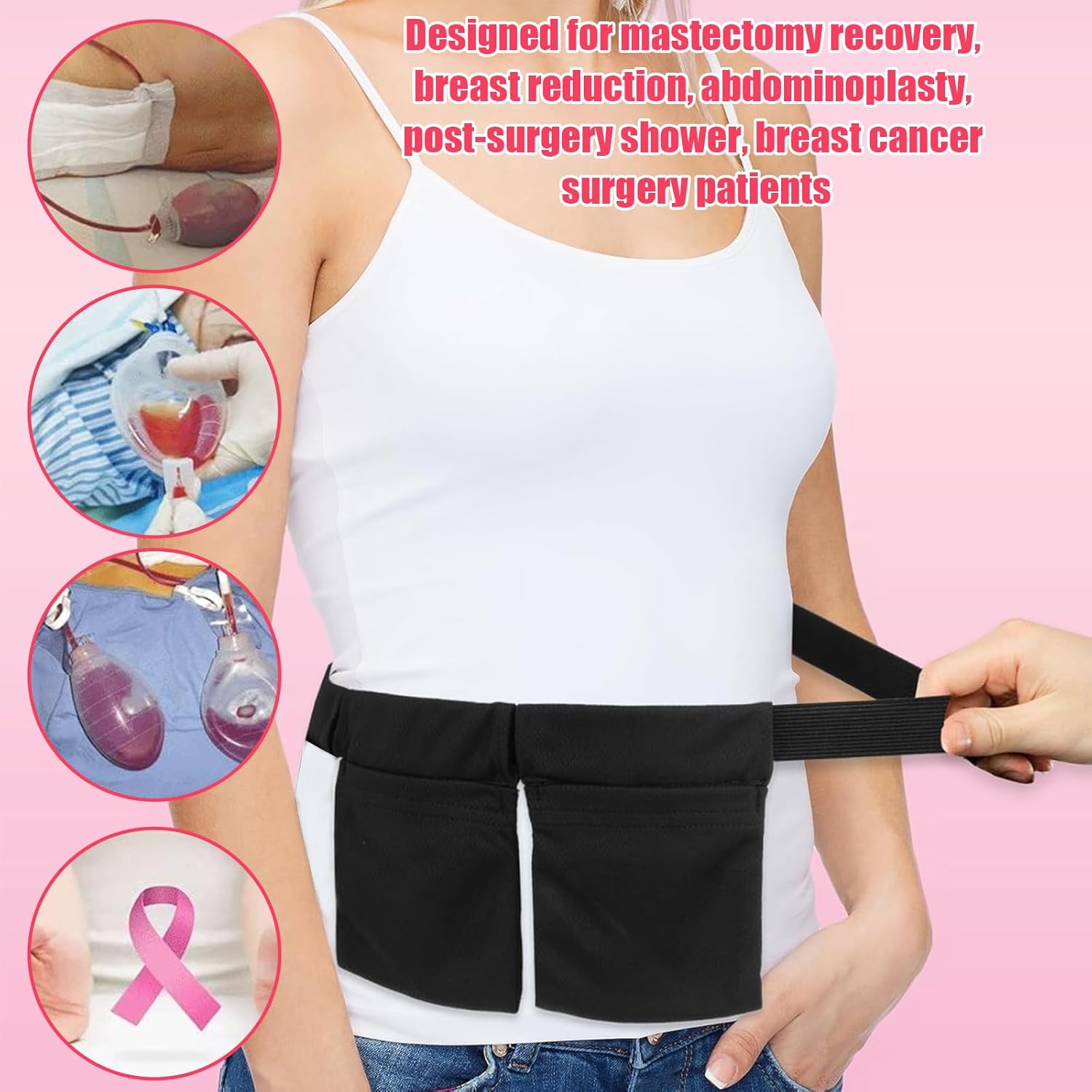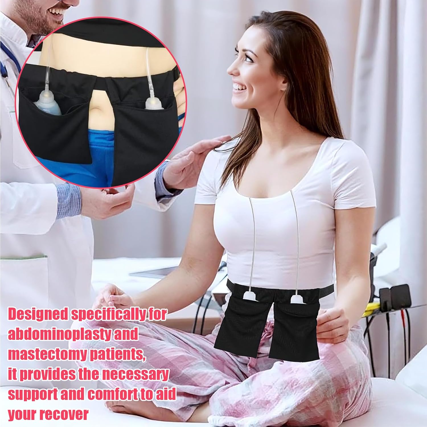 Tummy Drain Bottle Holder, Post Surgery Drain Bag Holder for Breast Surgery Adjustable Comfortable Breathable Great for Post-Surgery Care Includes 2 Bags