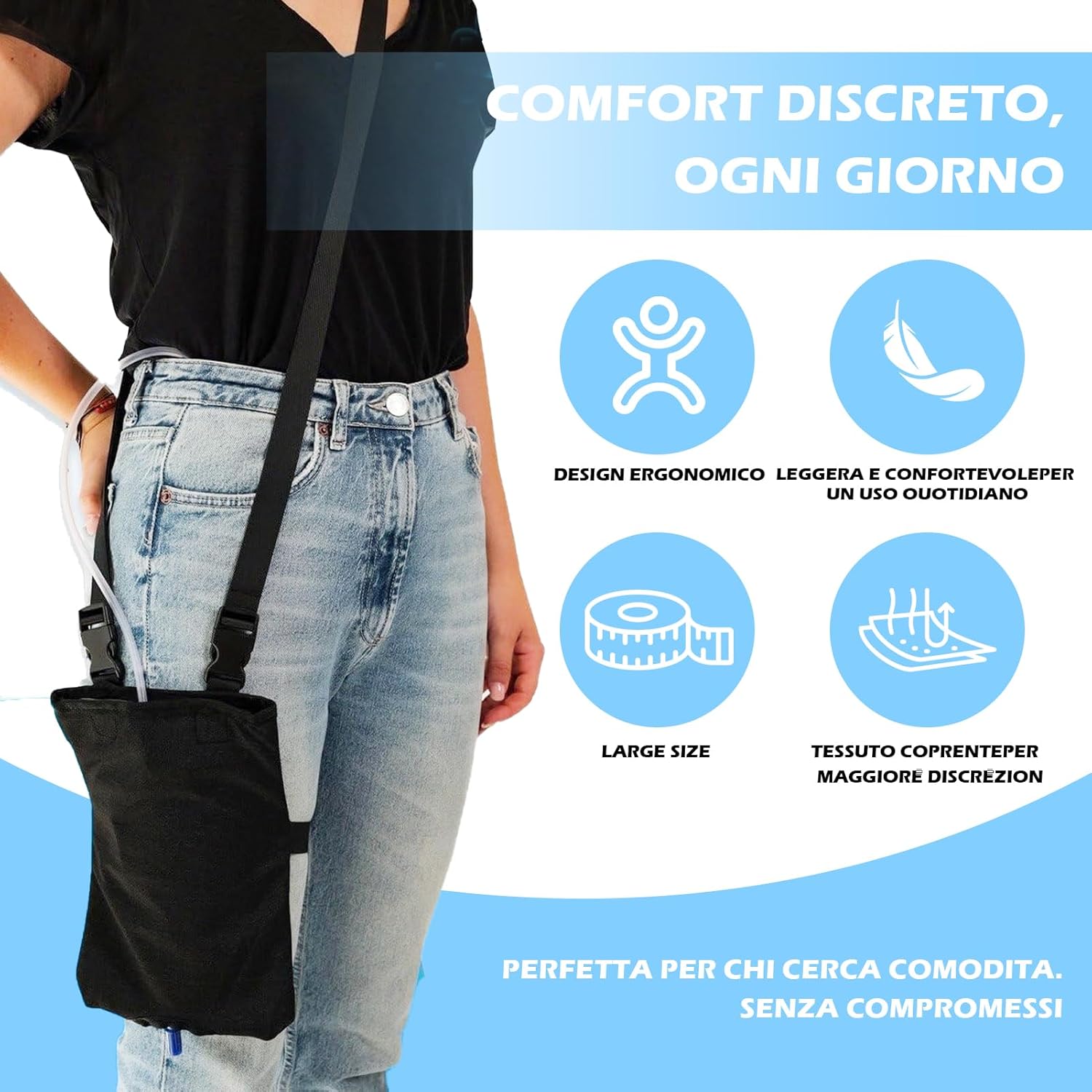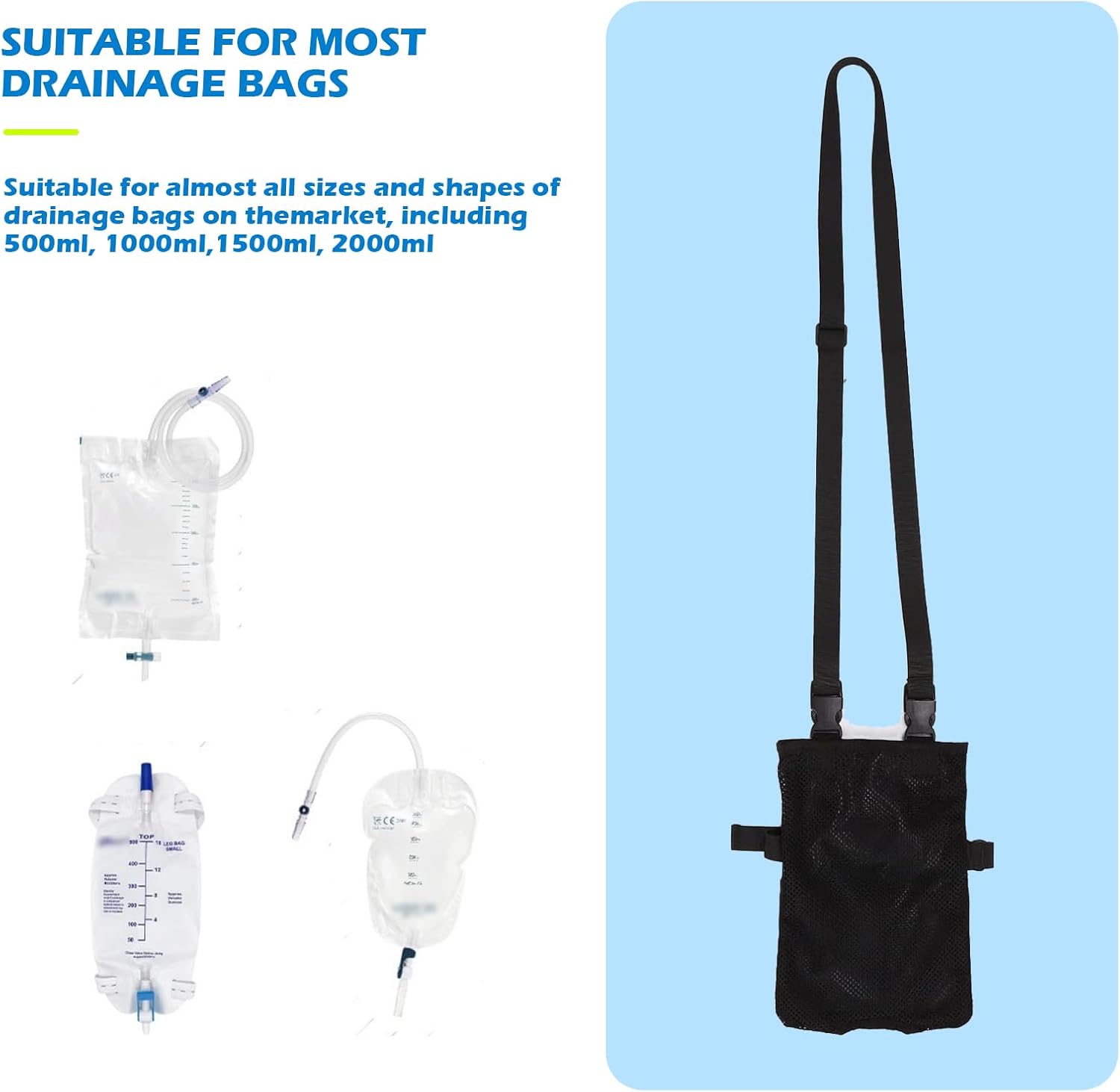 Universal Catheter Bags, Versatile Elastic Leg Catheter Holder, Urine Bags to Carry, Adjustable Shoulder Strap and Invisible Opening, Wearable and Discreet (Black)