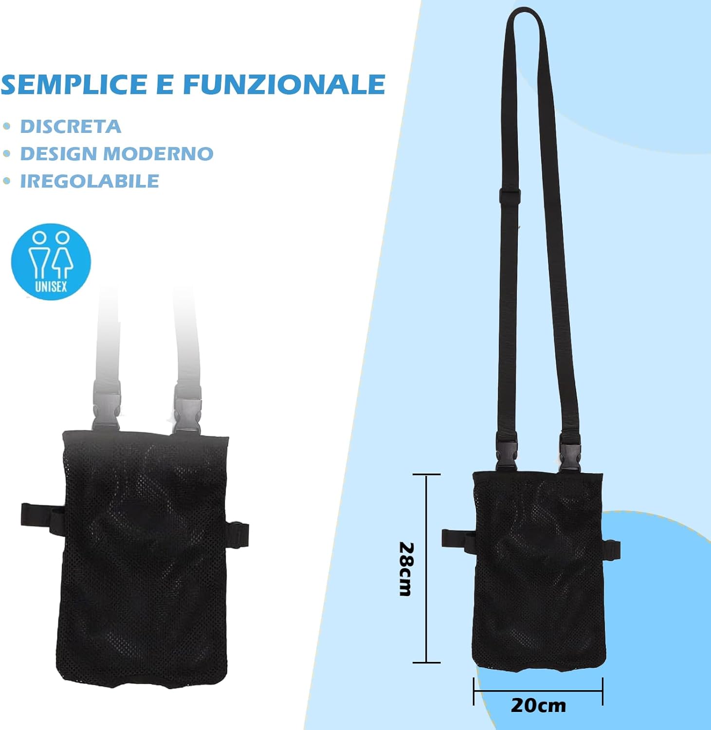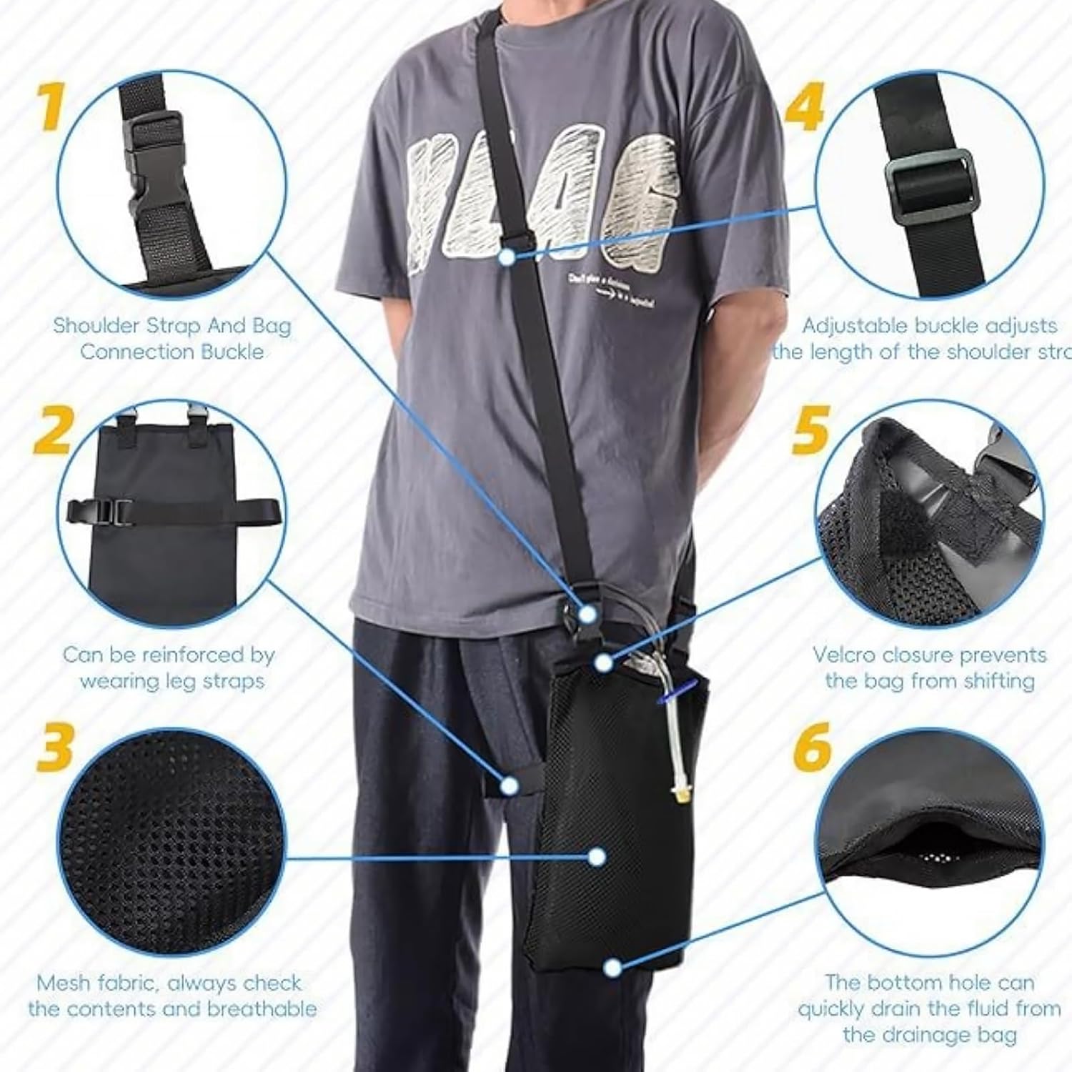 La bolsa de catéter universal está diseñada para ofrecer discreción y comodidad. Cuenta con un bolsillo con ranuras invisibles en la parte inferior, ideal para ocultar el conector y proteger la privacidad. Su diseño multifuncional permite usarla al caminar, hacer senderismo, viajar o como soporte para bolsa de infusión. Está hecha de malla de alta calidad, lo que la hace duradera y fácil de lavar. Además, incluye ranuras ocultas en la parte inferior para facilitar el drenaje de líquidos de manera higiénica.