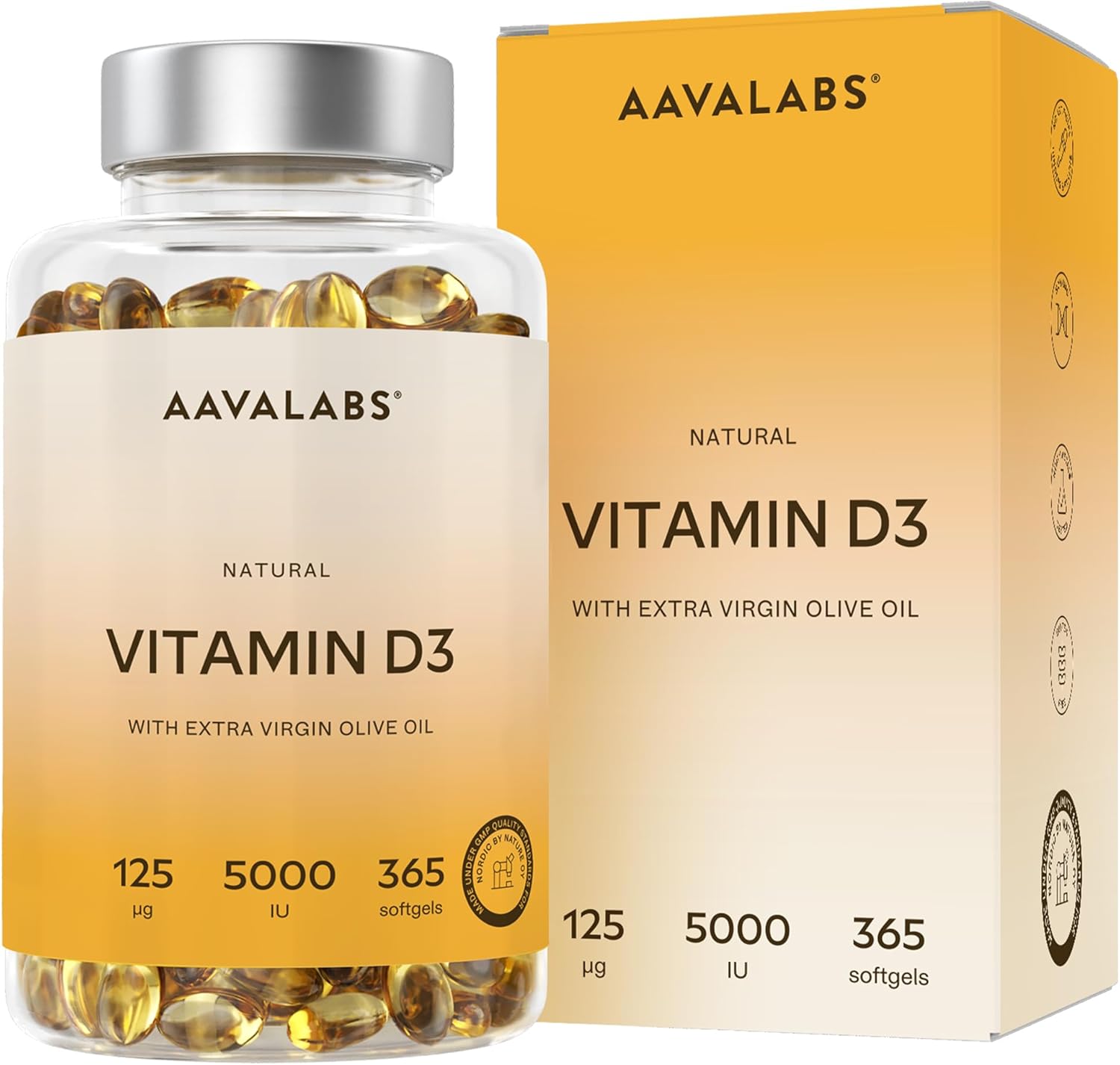 Vitamin D3 Natural [5000 IU] Depot – Highly Concentrated – with Extra Virgin Olive Oil for Optimal Absorption – Supports Bone and Immune Function – Food Supplement – 365 Capsules