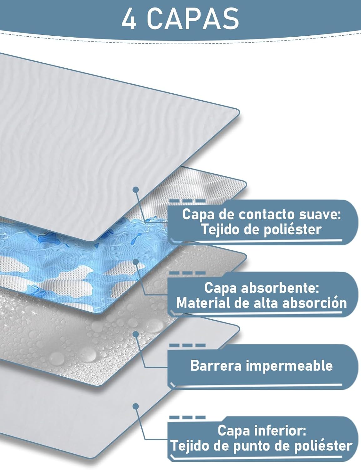 Los protectores de cama lavables para adultos con alas de 50 cm son una solución práctica y efectiva para mantener la cama limpia y seca. Con un tamaño de 90 x 85 cm, son ideales para camas de 90 cm, ofreciendo una cobertura adecuada para adultos, niños y personas mayores. Estos protectores son impermeables, lo que significa que puedes despedirte de las sábanas manchadas tras incidentes. Además, están certificados por OEKO-TEX, lo que garantiza que han sido testeados contra 350 sustancias, siendo seguros y hipoalergénicos.