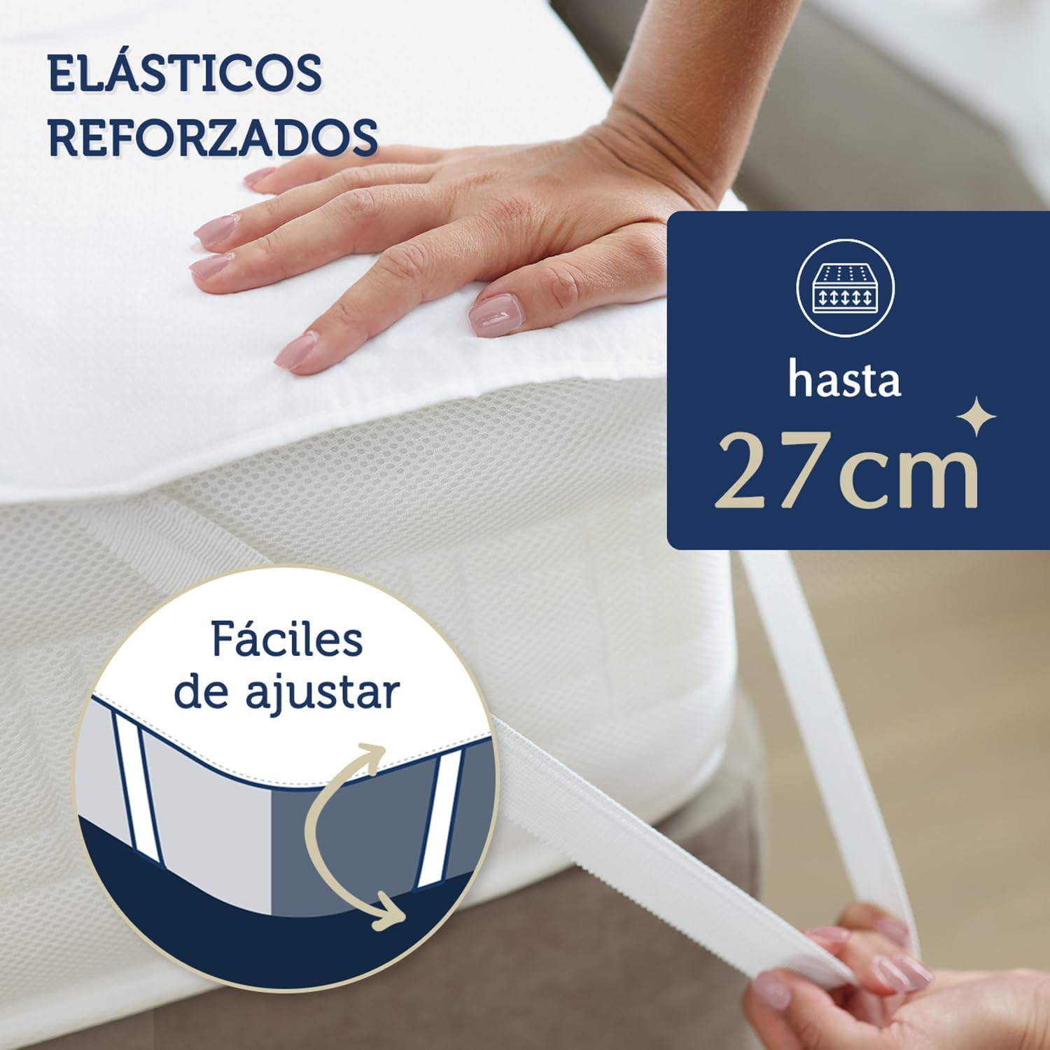 - Fácil de colocar gracias a sus esquinas elásticas