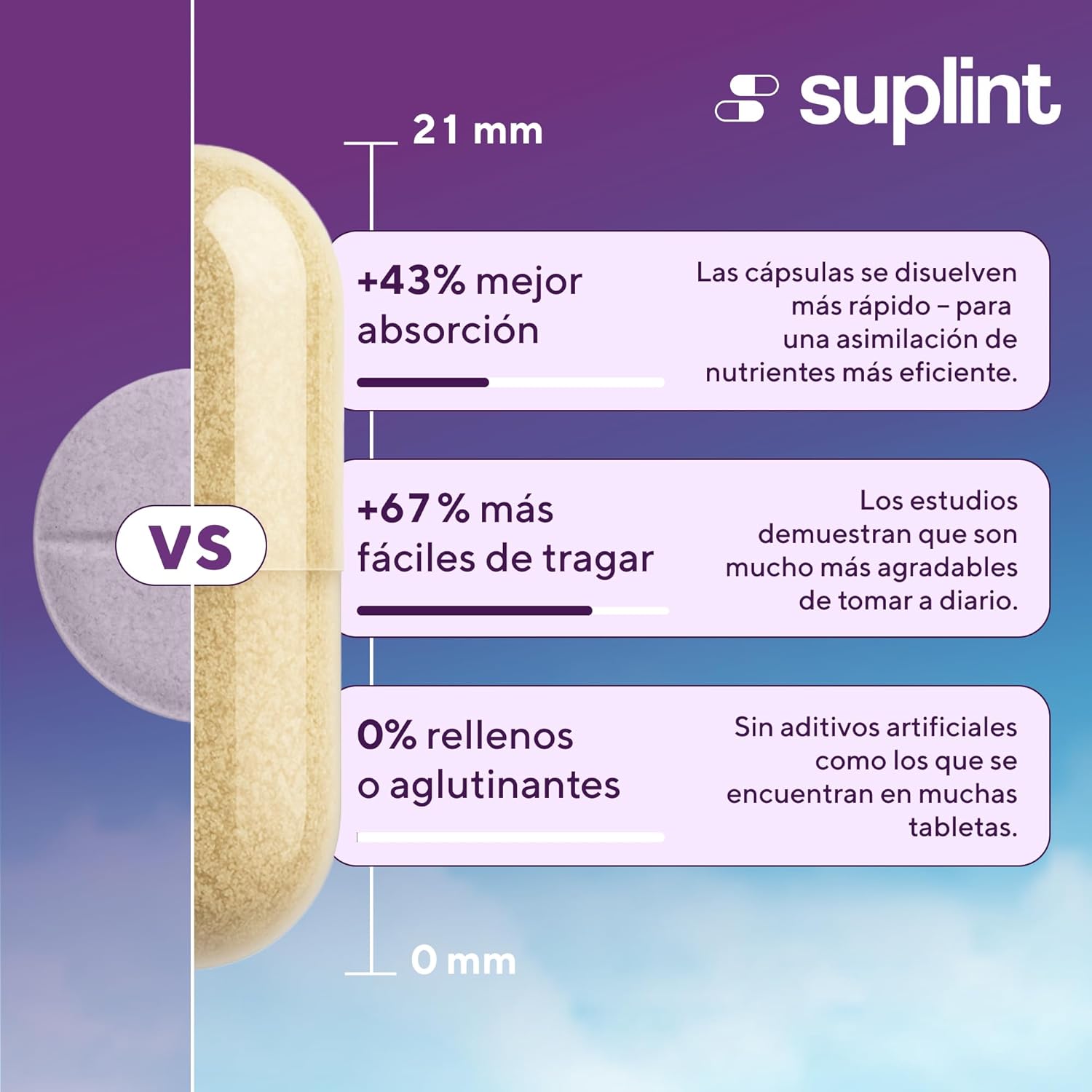 - Cápsulas fáciles de tragar.