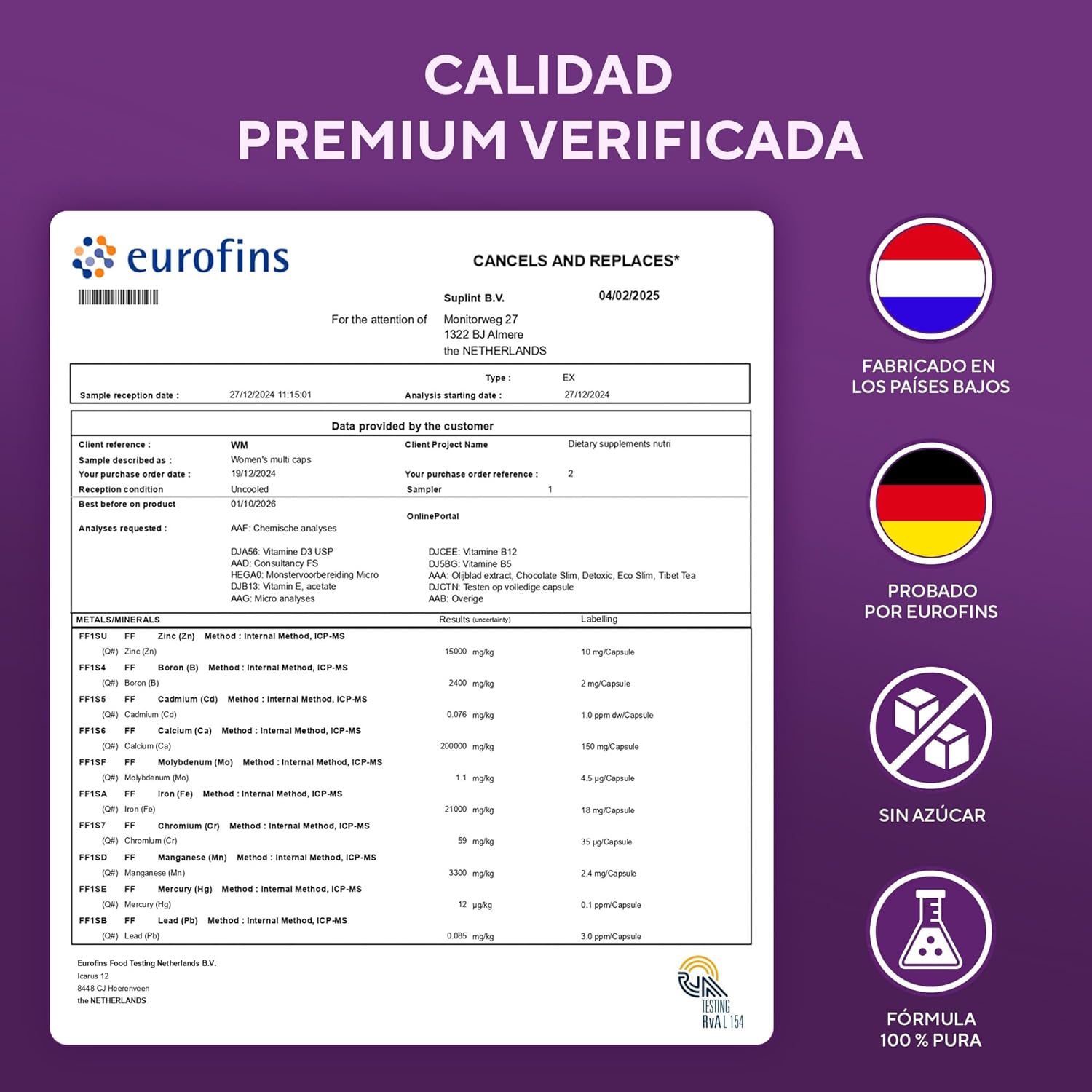 - Fórmula completa con vitaminas y minerales.