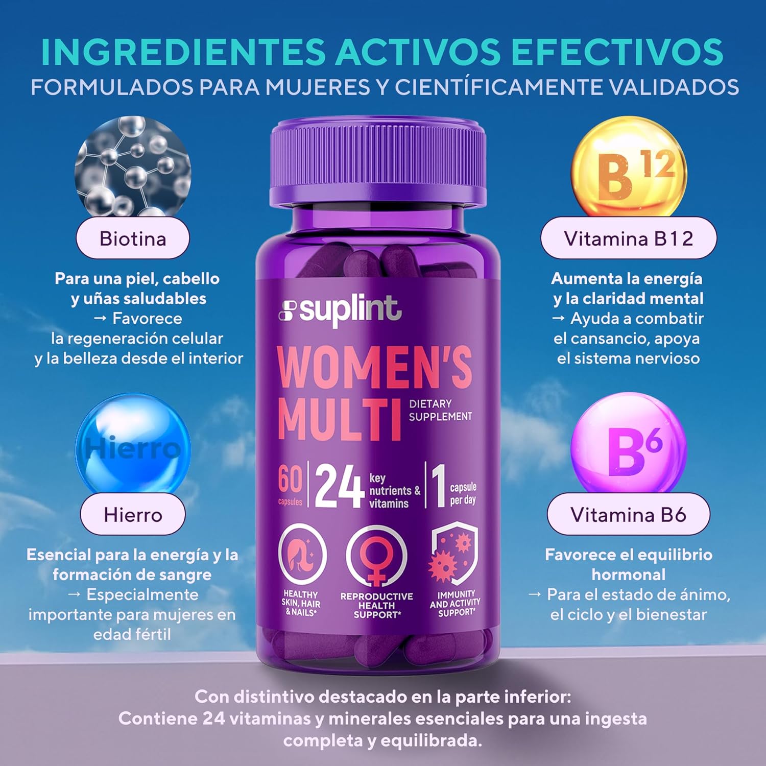 - Fórmula diseñada específicamente para mujeres.