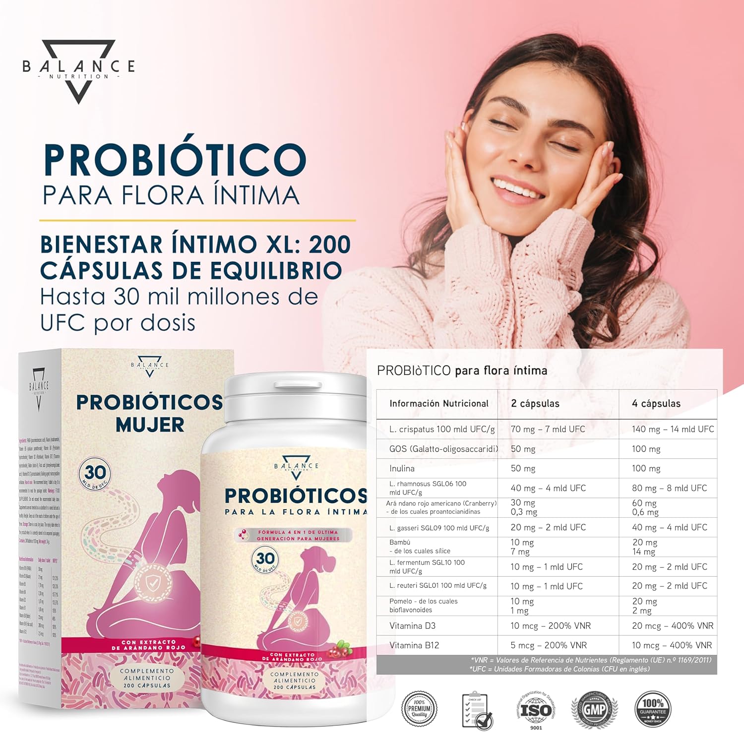 Women’s Probiotics – 200 cps | Help for Bacterial Vaginosis, Candida and Cistitus | Intimate Flora Woman Probiotics | 30 Billion CFU/Day, Lactobacillus Reuteri, Rhamnosus, Crispatus, Cranberry