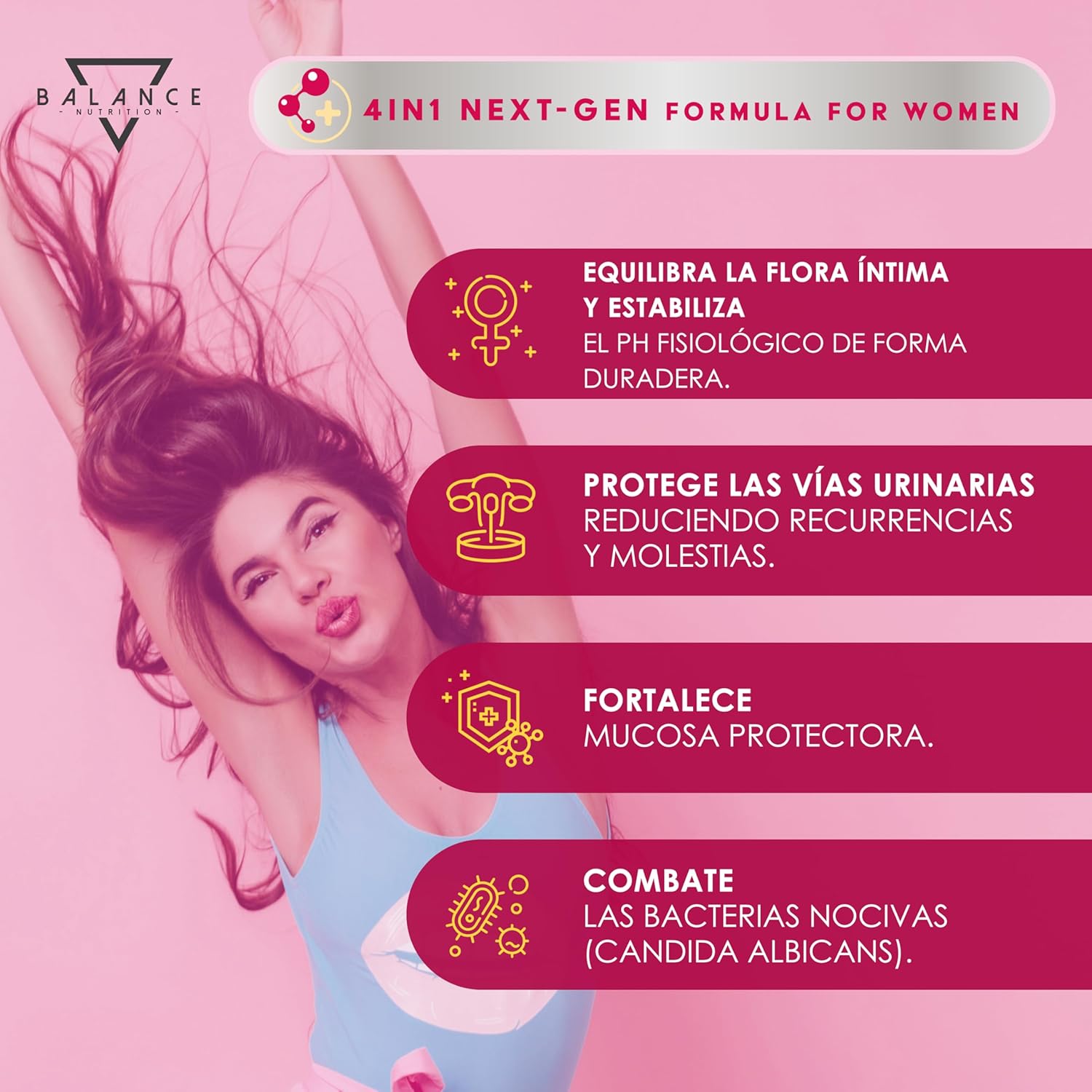 Women's Probiotics are designed to support intimate health, particularly in addressing issues like bacterial vaginosis, candida, and cystitis. This product contains 30 billion CFU per day, featuring beneficial strains such as Lactobacillus Reuteri, Rhamnosus, and Crispatus, along with cranberry extract. These probiotics may help maintain a balanced flora and promote overall vaginal health.