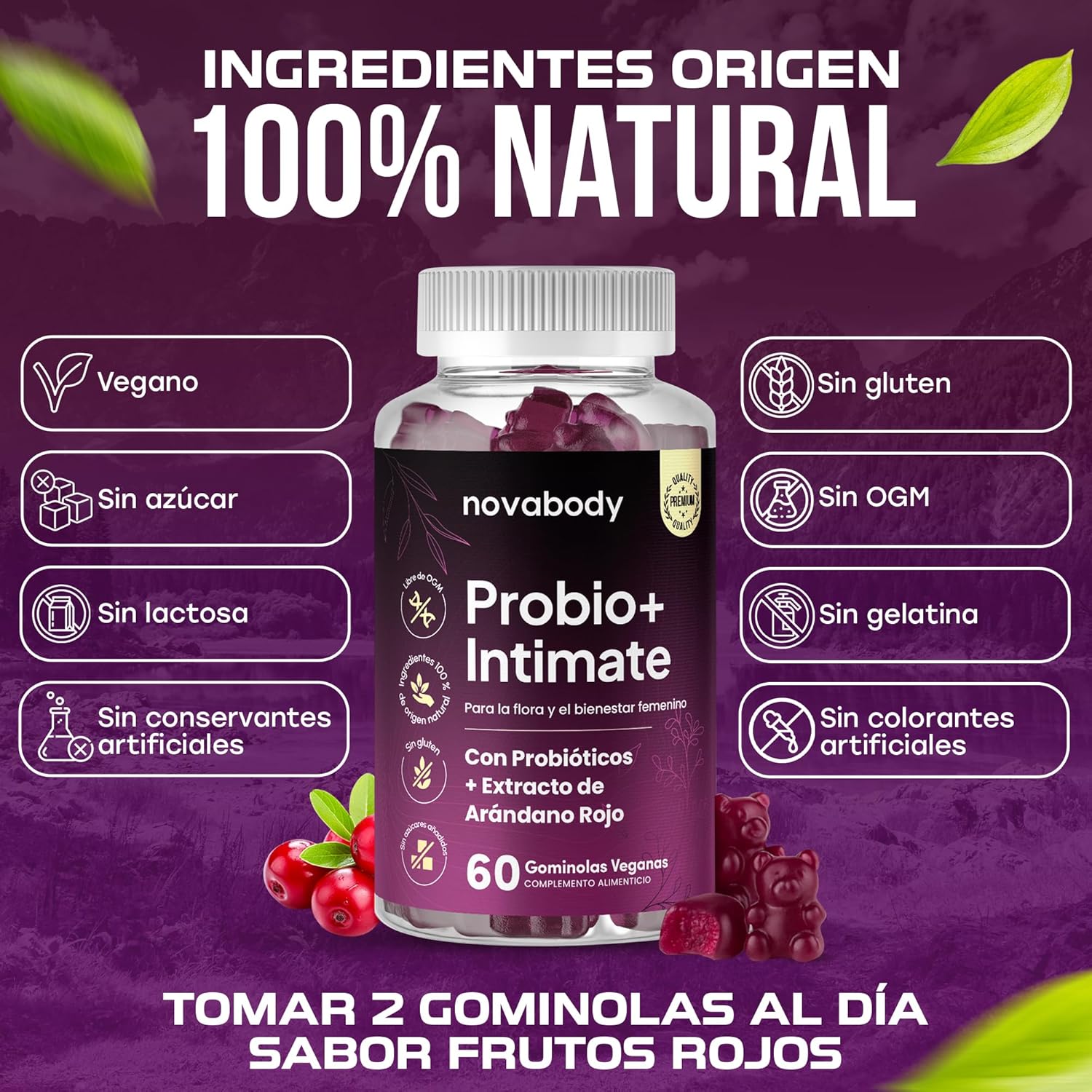 Discover the benefits of Novabody Probio+ Intimate Gummies, designed specifically for women's intimate and digestive wellness. These gummies combine 6 high-quality probiotic strains with the natural goodness of lingonberry, known for its supportive properties. Enjoy the following benefits: