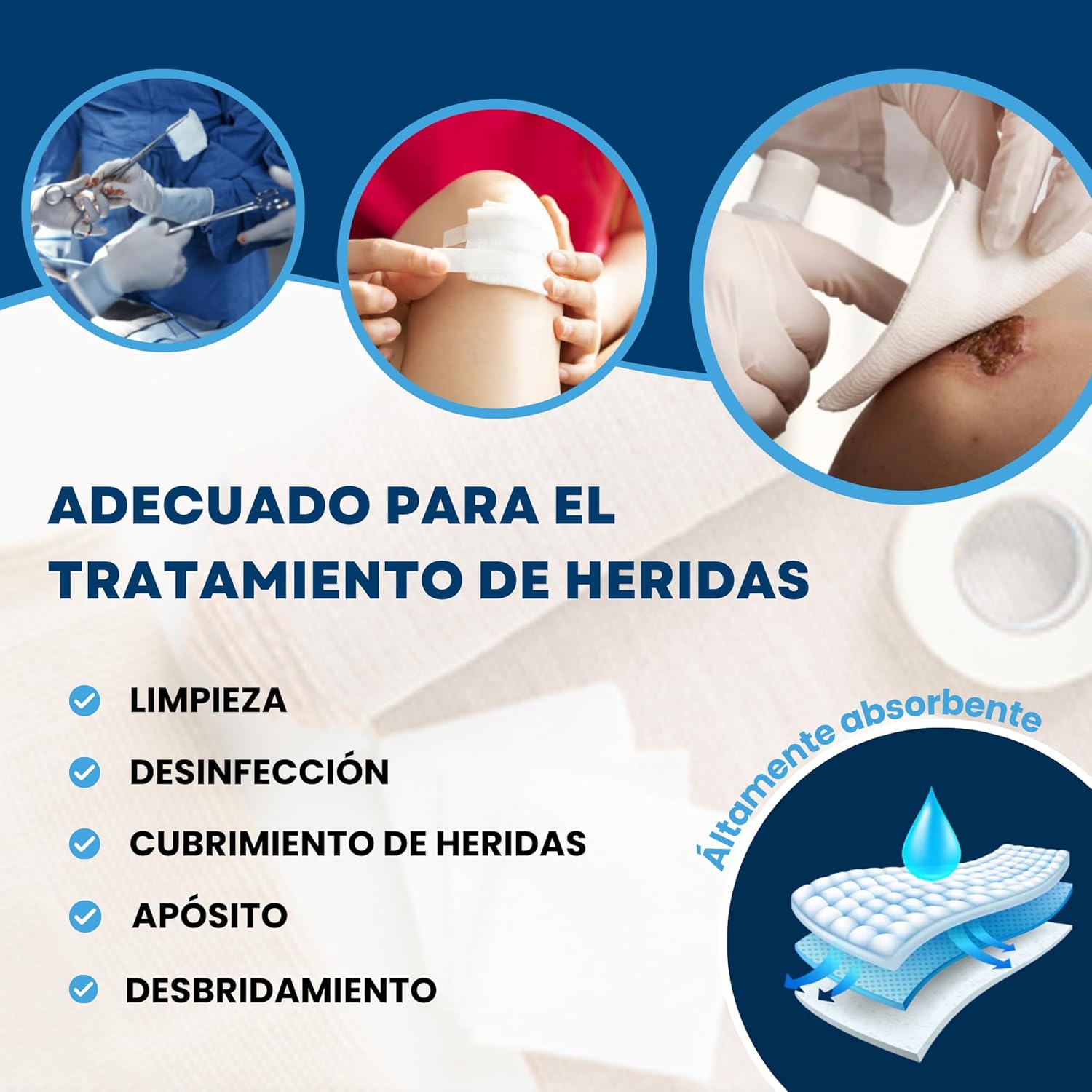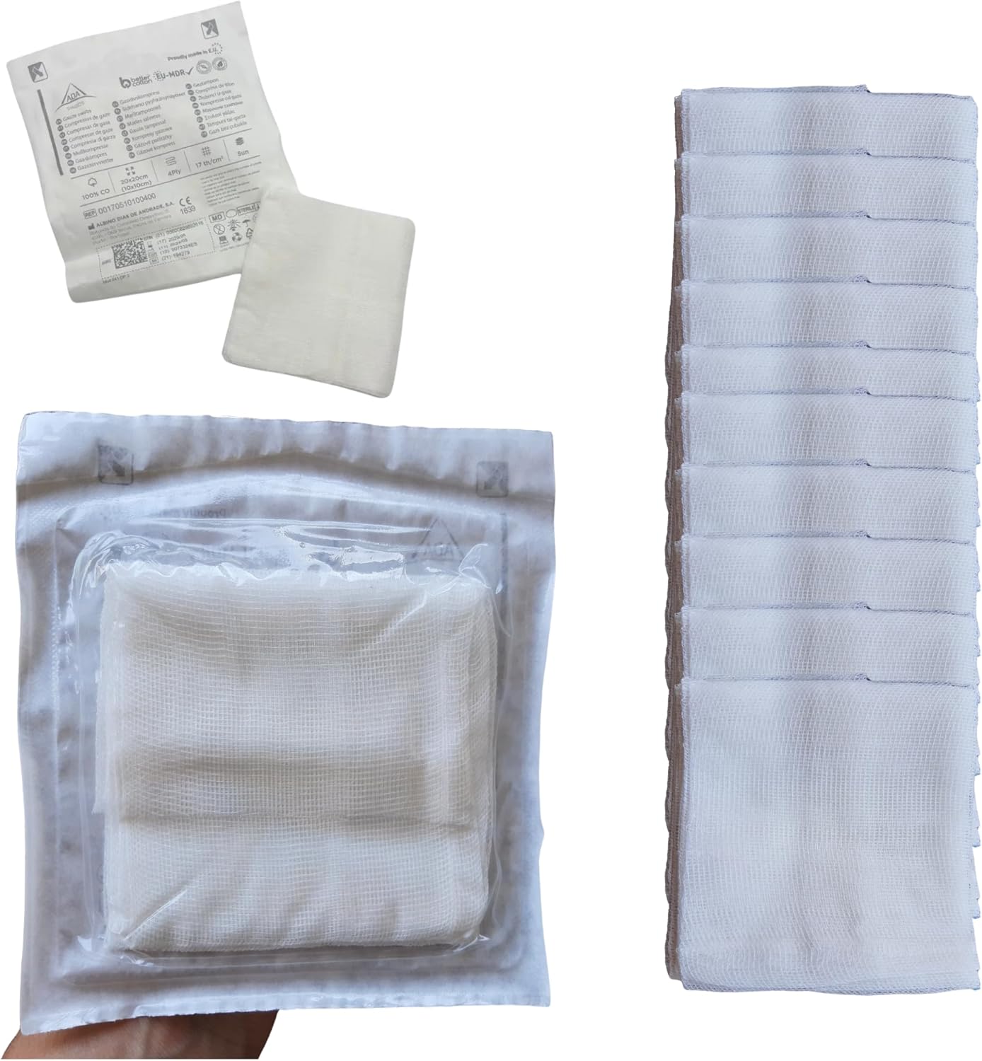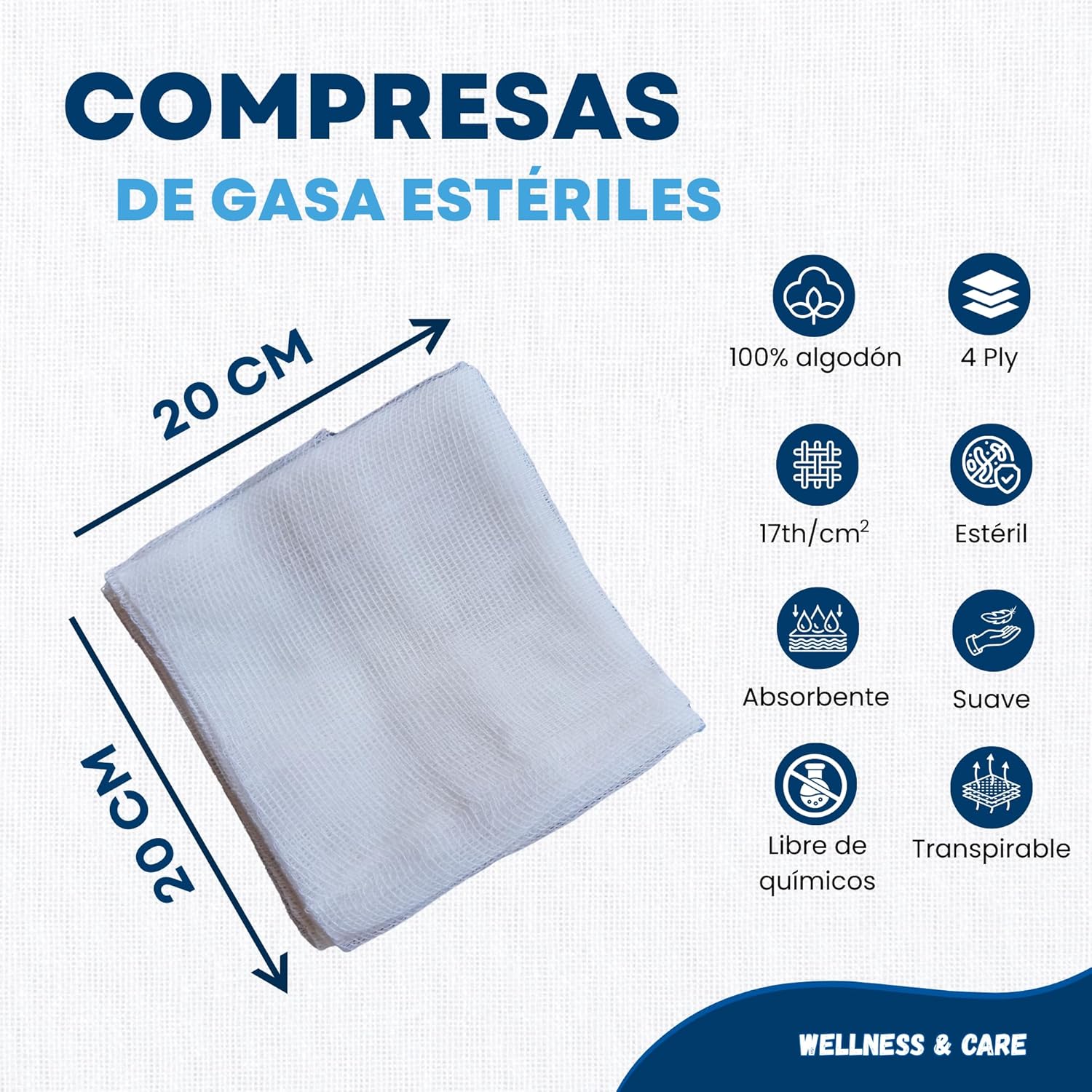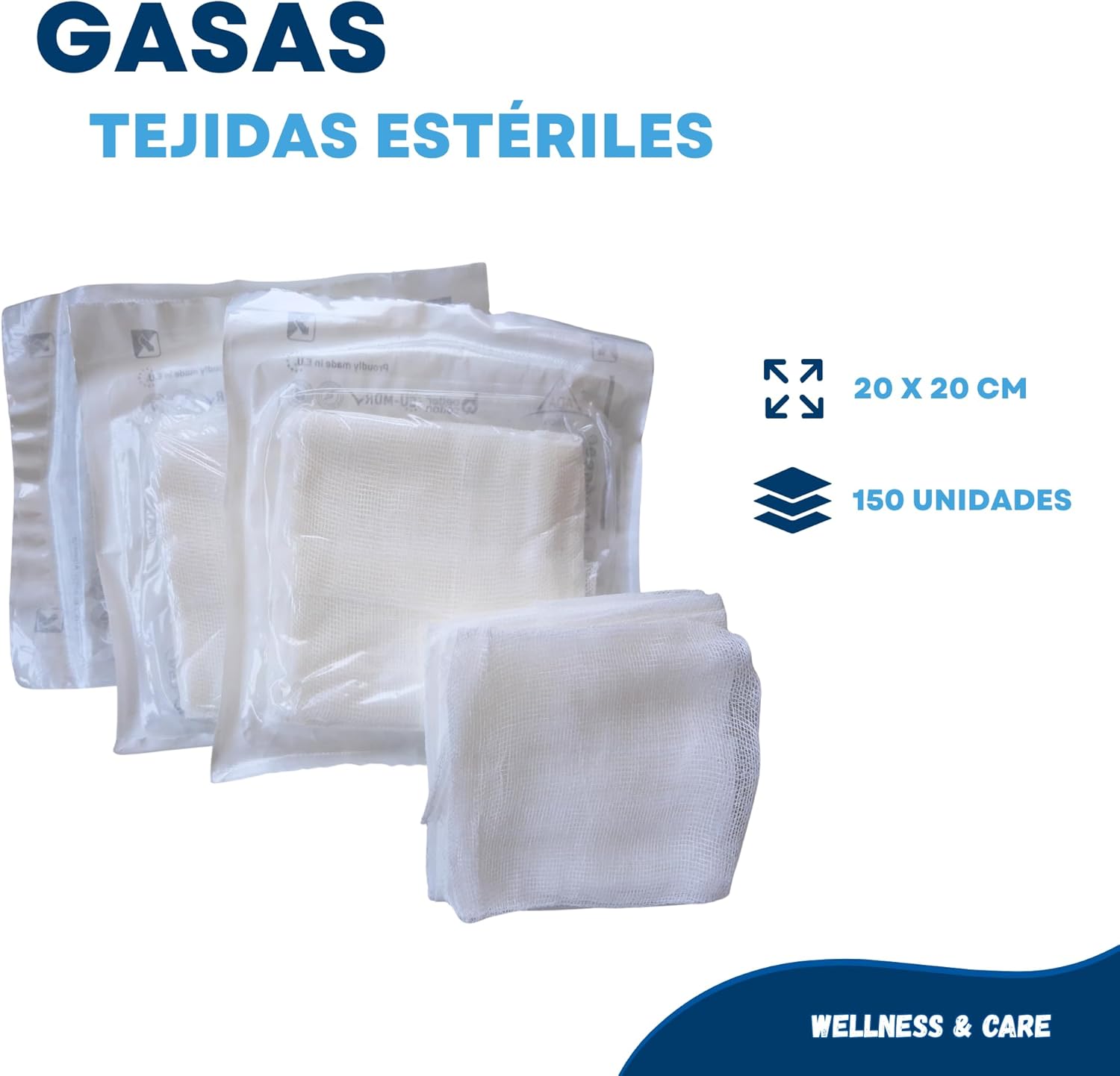 Discover our 150 pack of sterile gauzes, individually sealed and made in the EU. These 4-layer gauzes are designed for the treatment and disinfection of all types of wounds. Their high quality ensures they do not adhere to the skin, making healing processes more comfortable. The gauzes have numerous applications, including: